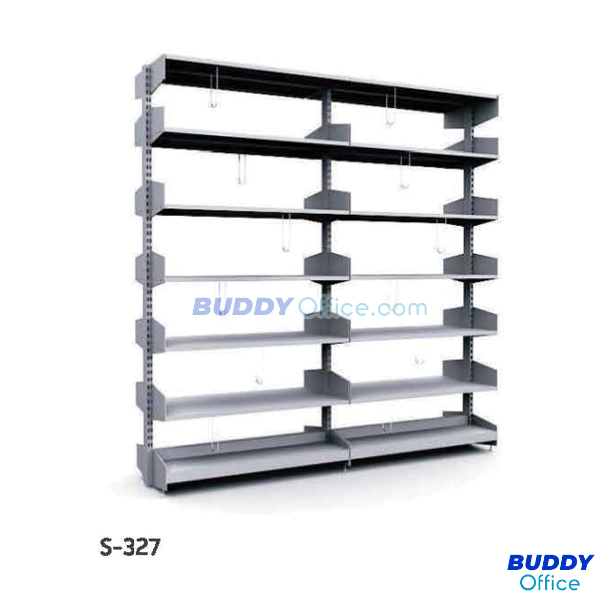 ◆ ชั้นวางหนังสือ 7 ชั้น แบบคู่มีที่คั้นหนังสือ S327
