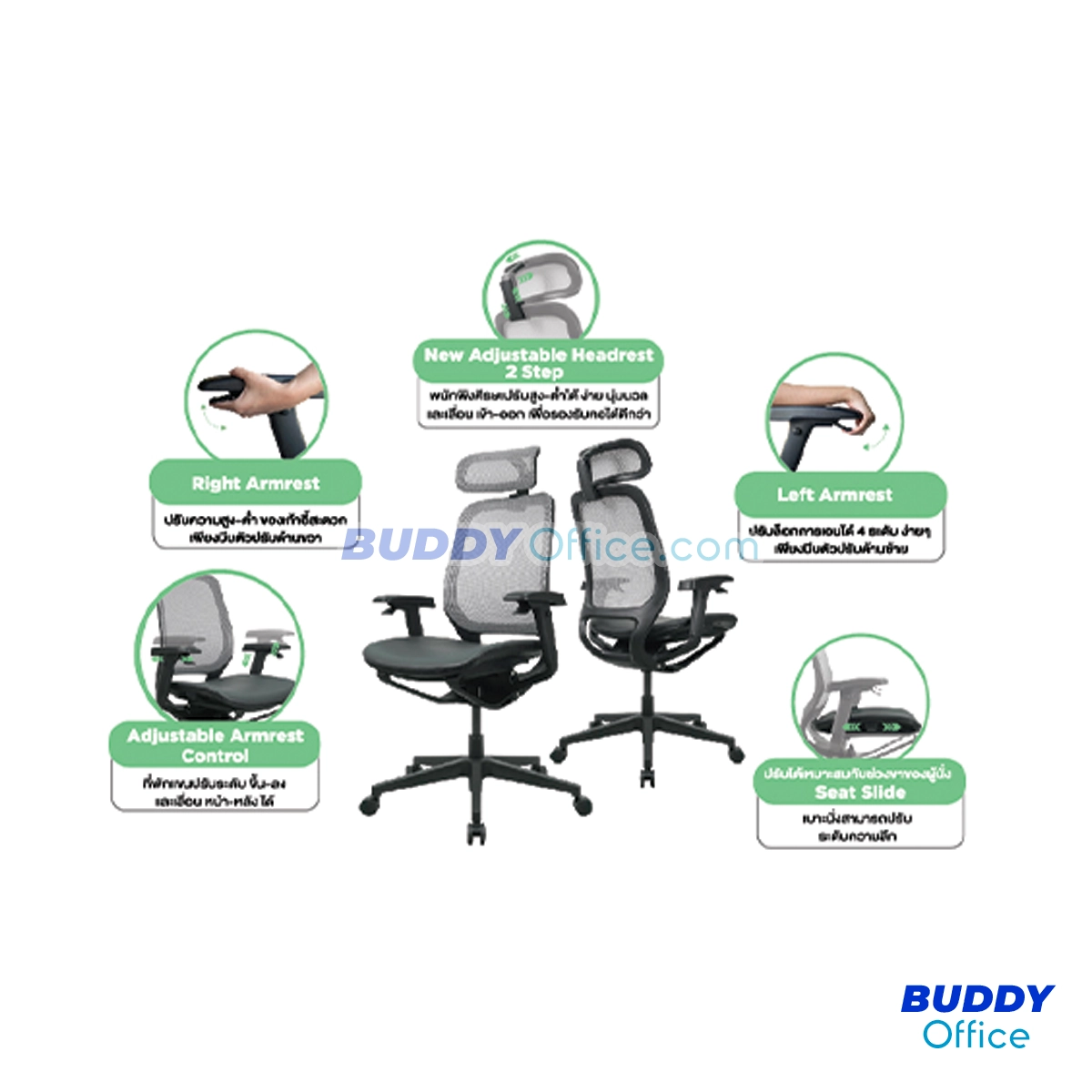 ◆ Smart Armrest ที่วางแขนรุ่นใหม่ปรับง่ายเพียงบีบก้านปรับบริเวณที่วางแขนก