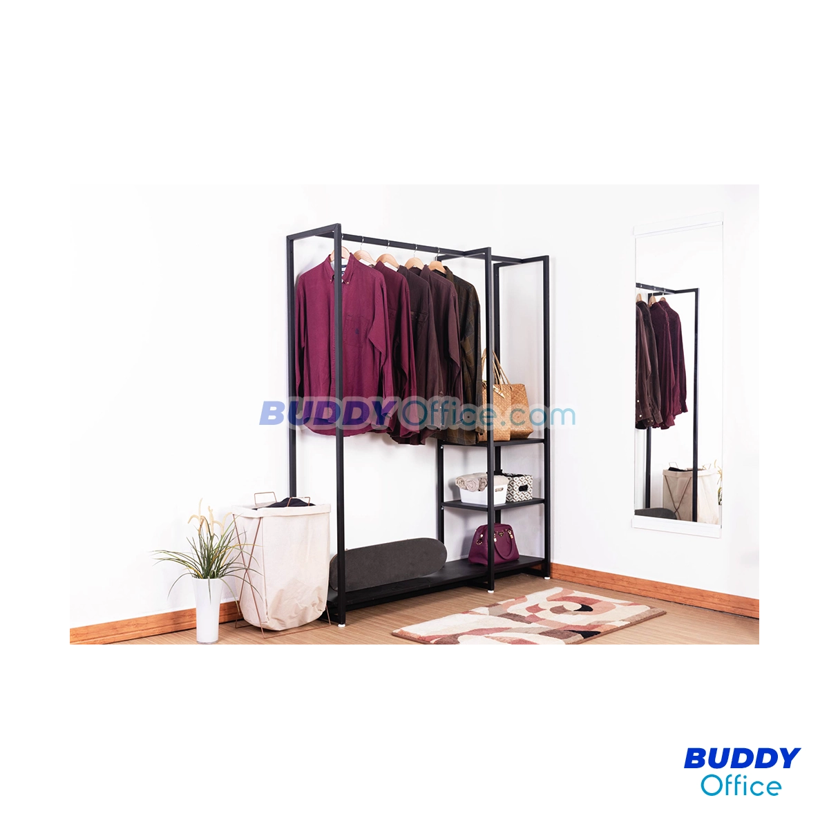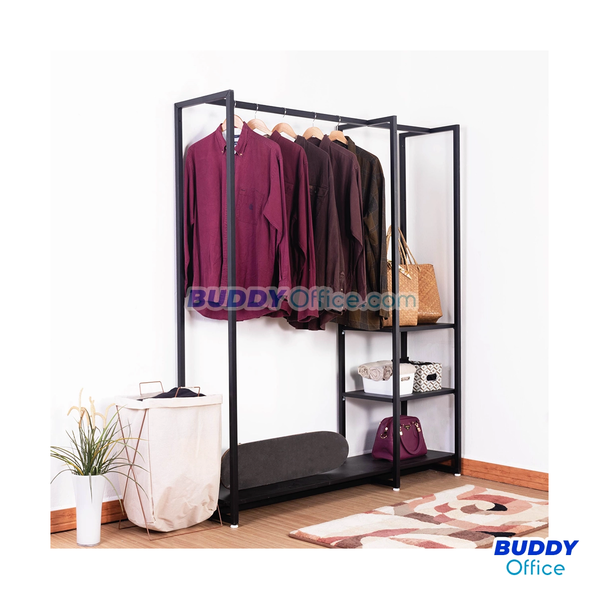 ◆ ชั้นราวเหล็ก แข็งแรง รองรับการแขวนเสื้อได้อย่างเต็มพื้นที่