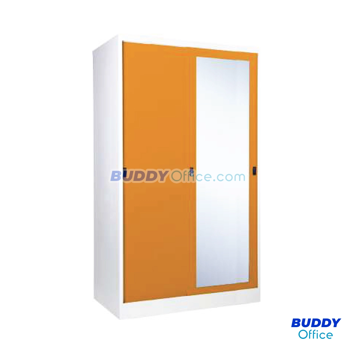 ◆ ตู้เสื้อผ้าเหล็กบานเลื่อนทึบ พร้อมกระจกเงาเต็มบาน