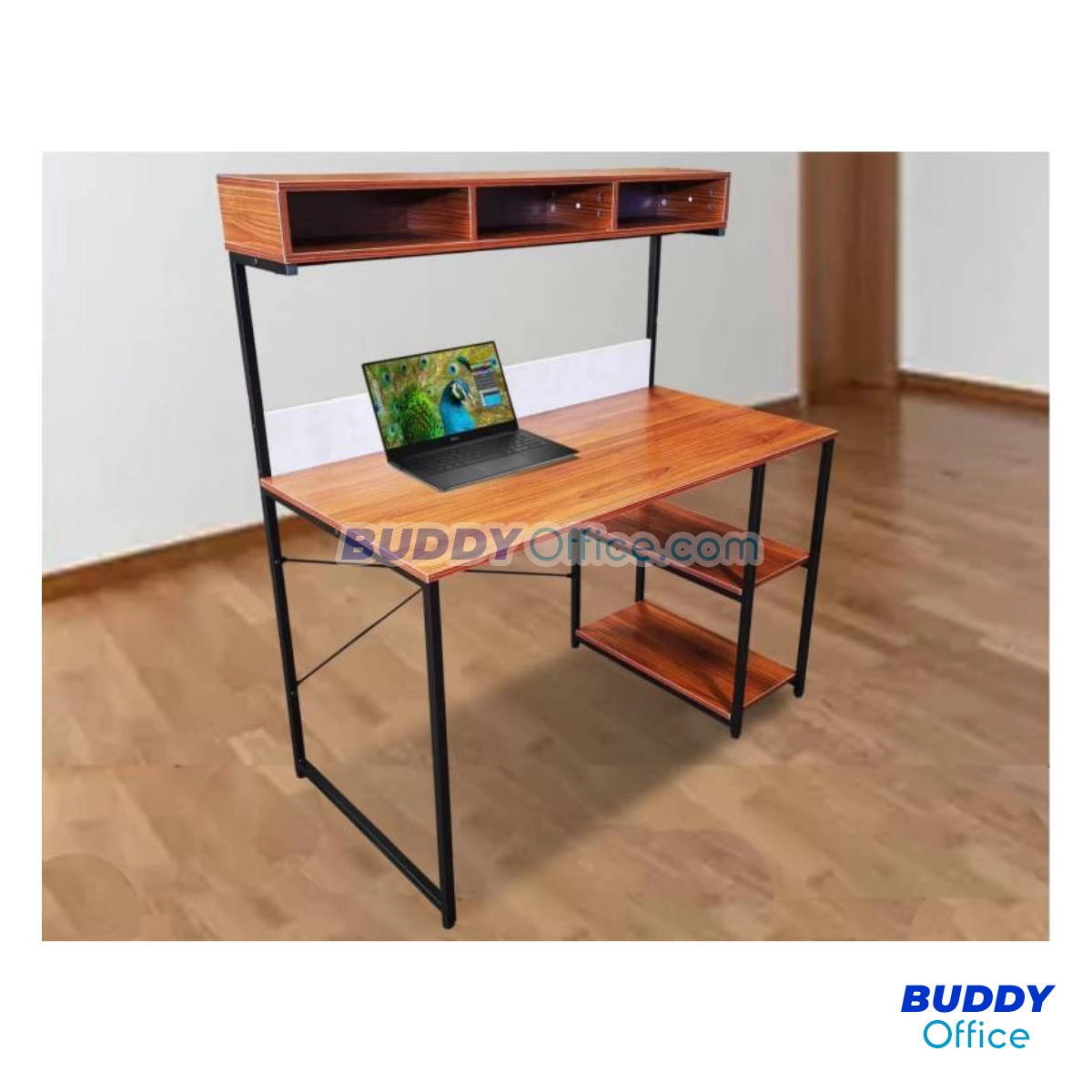 ◆ ด้านล่างโต๊ะมีชั้นไม้ 2 แผ่นชั้นสำหรับวางของ