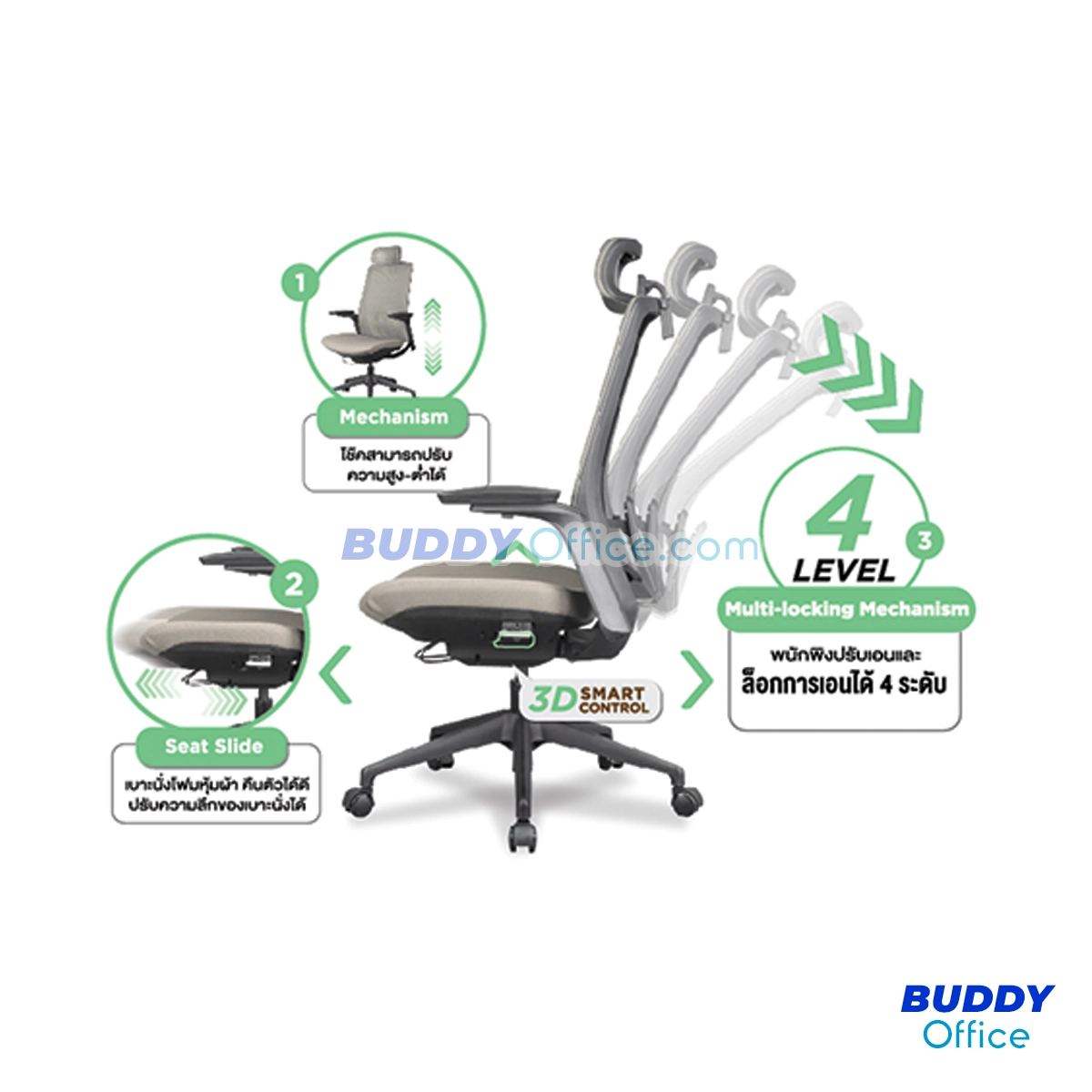 ◆ ปรับ Function ได้ครบง่ายเพียงจุดเดียวปรับครบทั้งตัว One touch Multi locking System