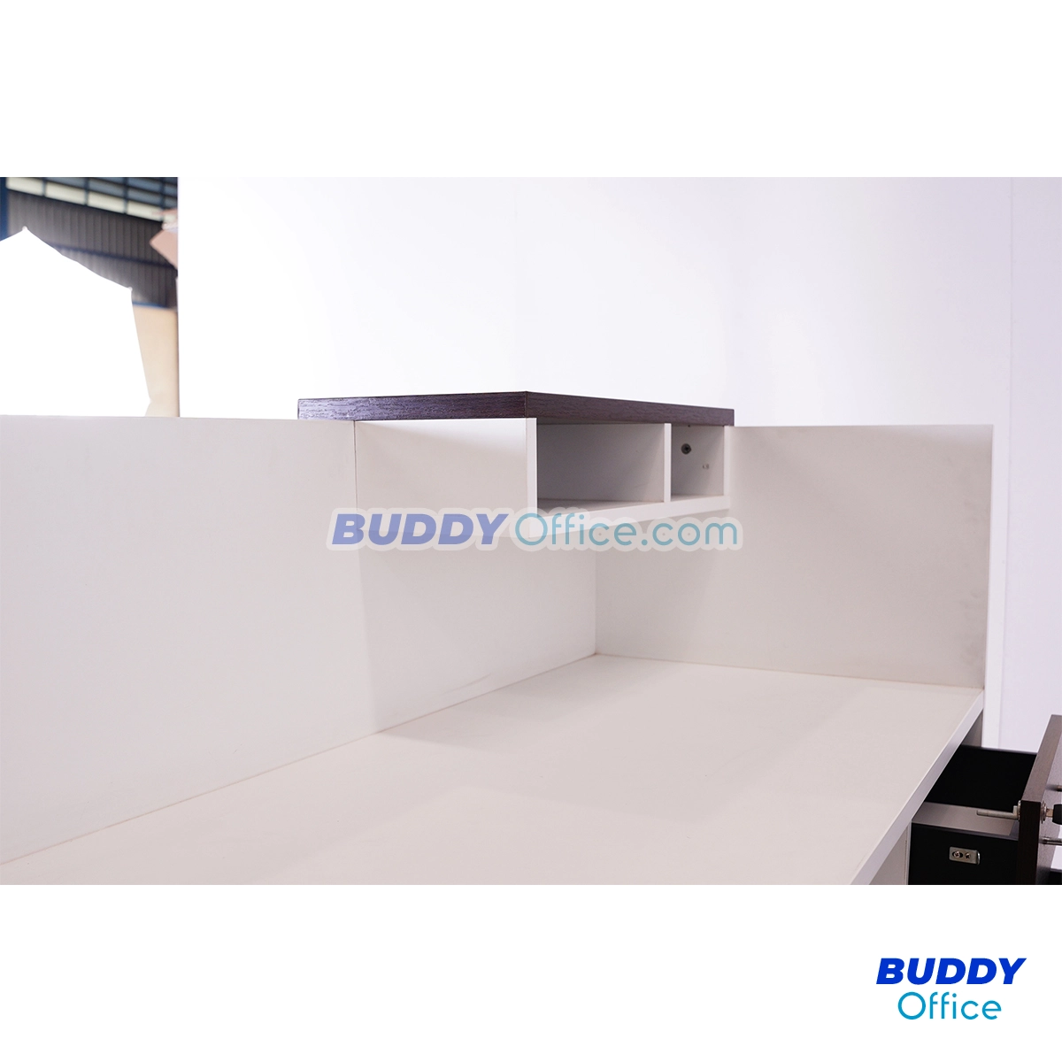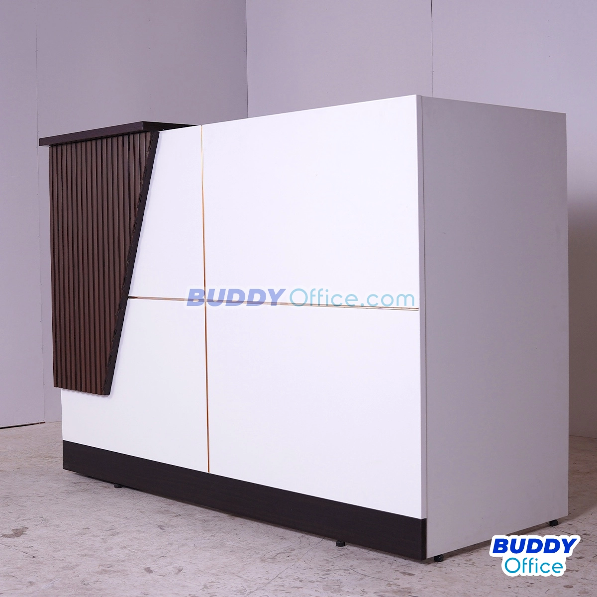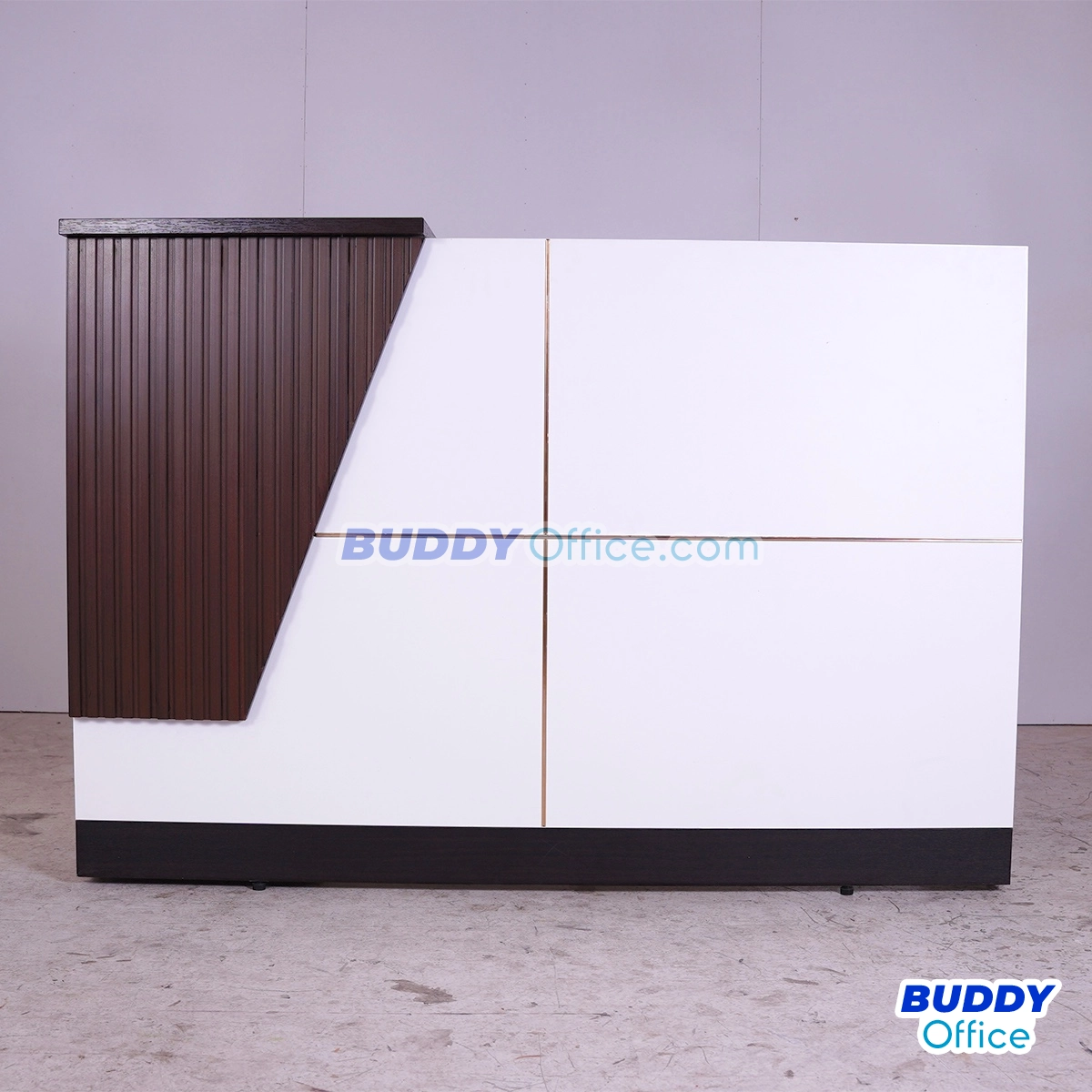 ◆ โต๊ะเคาเตอร์ต้อนรับ Counter BO-CT สีขาว + ระแนงสีโอ๊ค