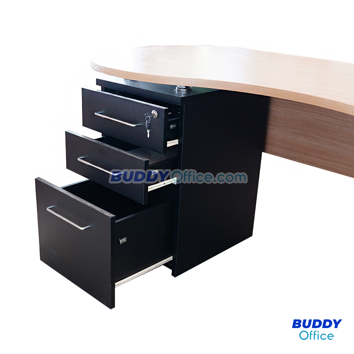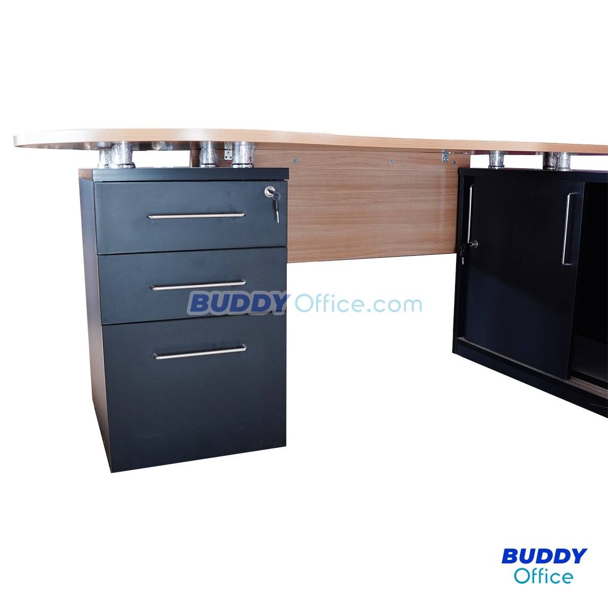 ◆ พร้อมตู้บานเลื่อน ชั้นโล่งและตู้ 3 ลิ้นชัก สีบีช+สีดำ