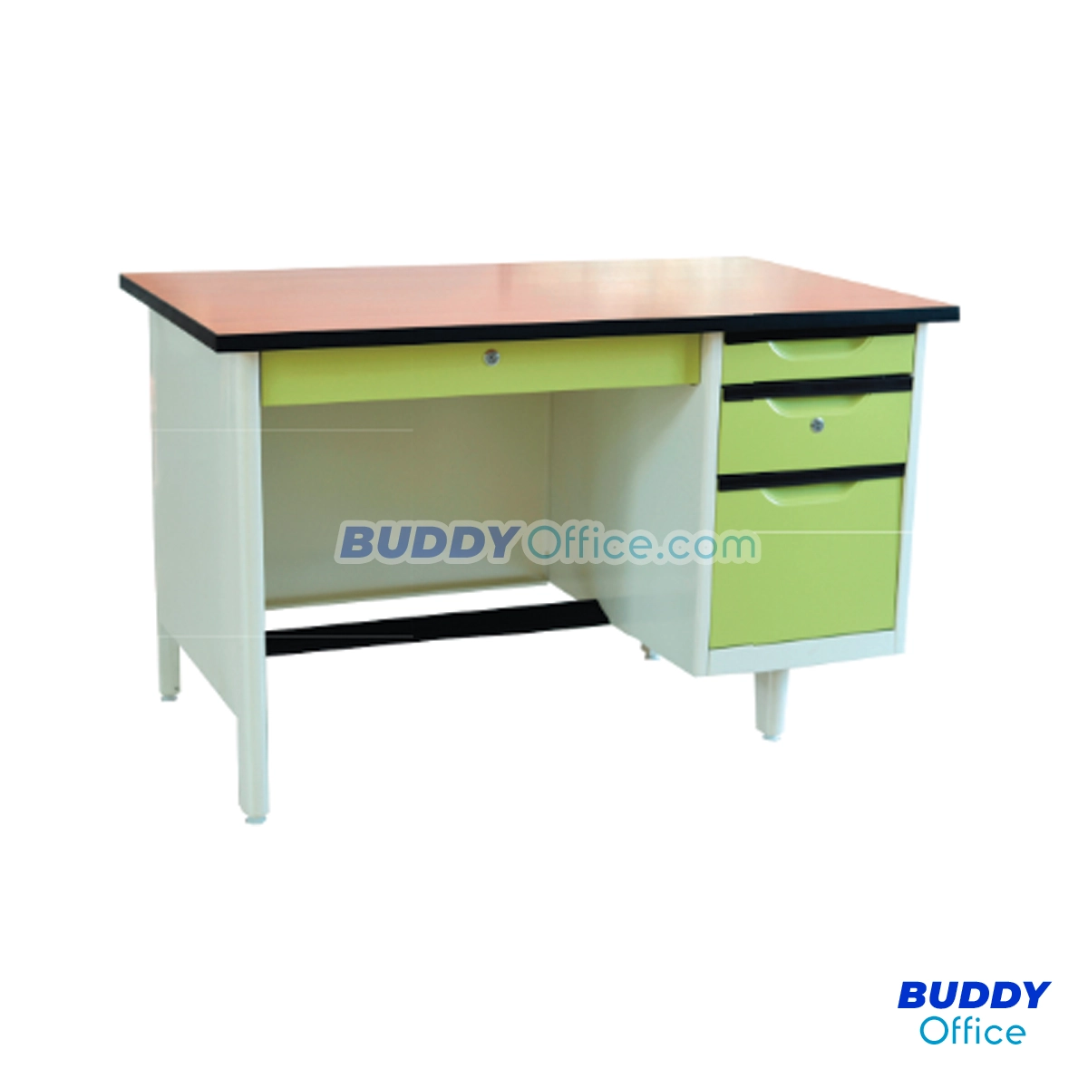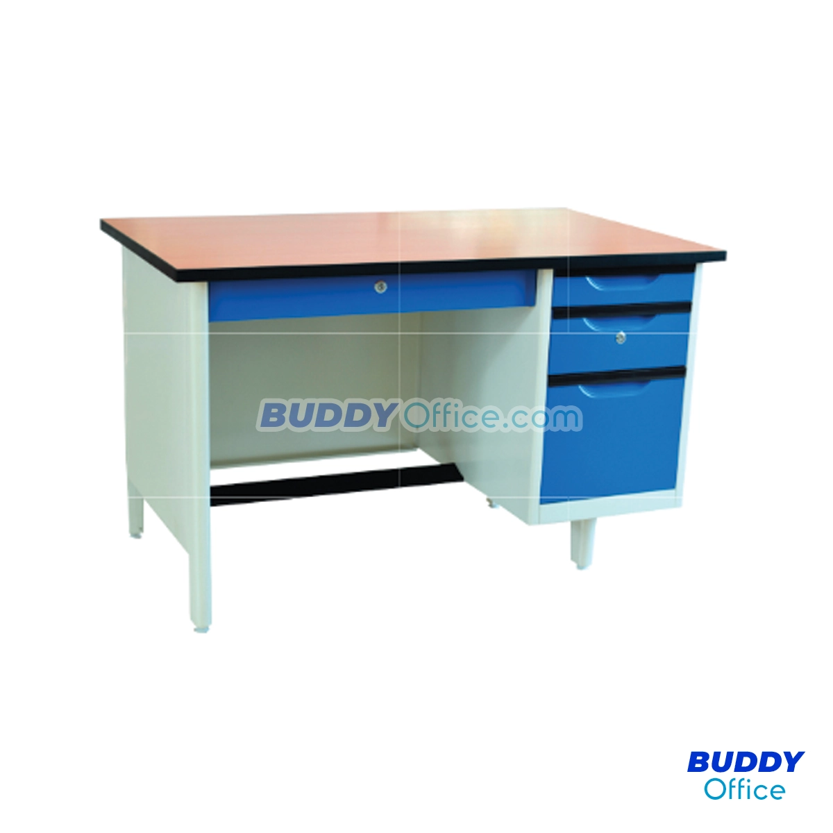 ◆ โต๊ะทำงานเหล็ก หน้าท็อปไม้ 4 ลิ้นชัก ขนาด 4 ฟุต รุ่น TW4F