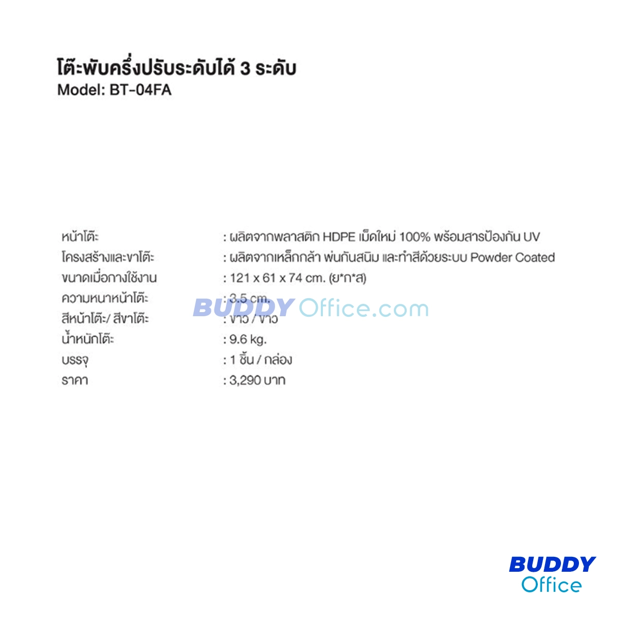 โต๊ะพับครึ่ง ปรับได้ 3 ระดับ BT-04FA