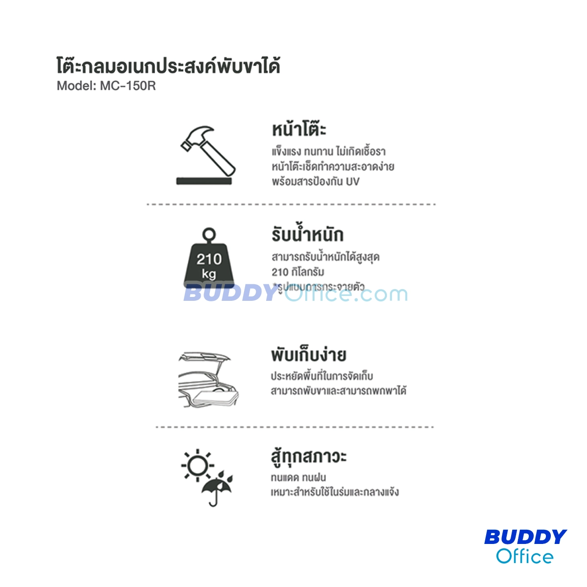 ◆ โต๊ะกลมอเนกประสงค์พับขาได้ MC-150R
