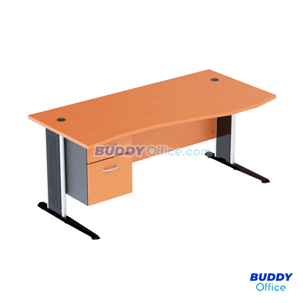 ◆ โต๊ะทำงานผู้บริหาร กล่อง 2 ลิ้นชักซ้าย โครงขาเหล็กตัว L หน้าท๊อป เจาะรูร้อยสายไฟ 2 ข้าง