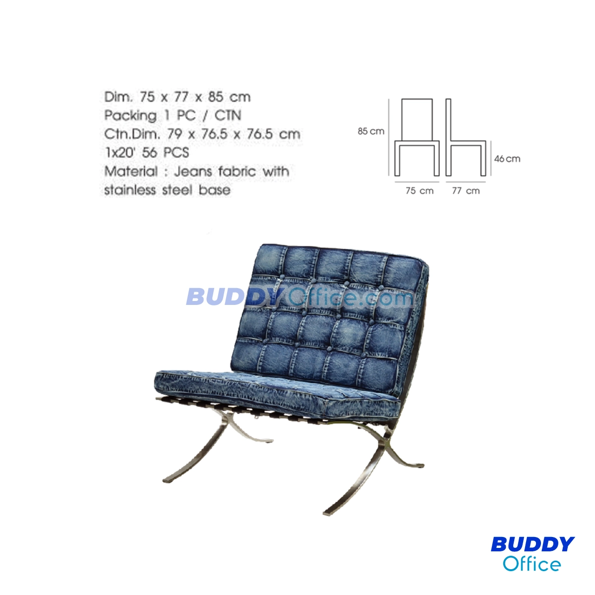 ◆ ตัวเบาะหุ้มด้วยผ้ายีนส์ทั้งตัว มีพนักพิง ไม่มีที่ท้าวแขน