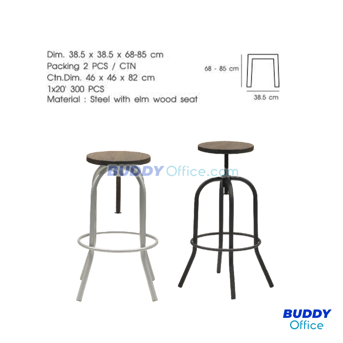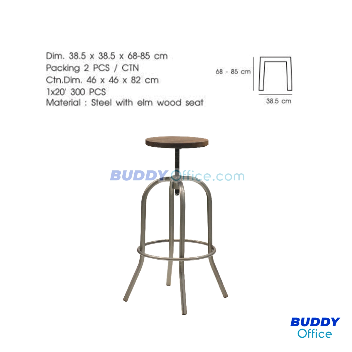◆ เก้าอี้ปรับระดับความสูงได้ เป็นเหล็กเคลือบเงา ที่นั่งไม้