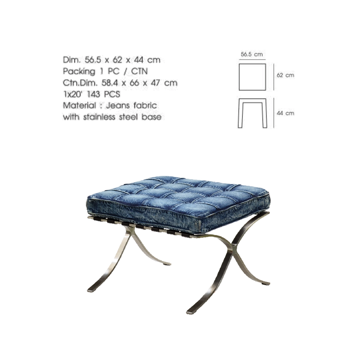 ◆ ตัวเบาะหุ้มด้วยผ้ายีนส์ทั้งตัว ไม่มีพนักพิง
