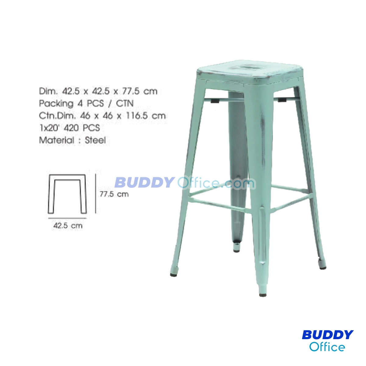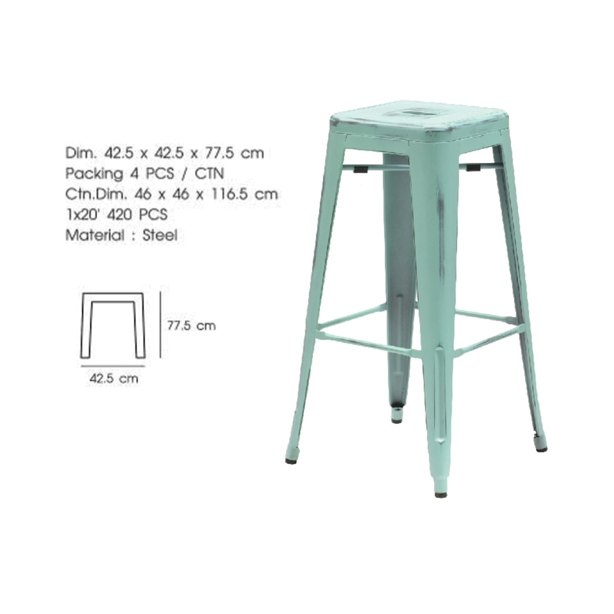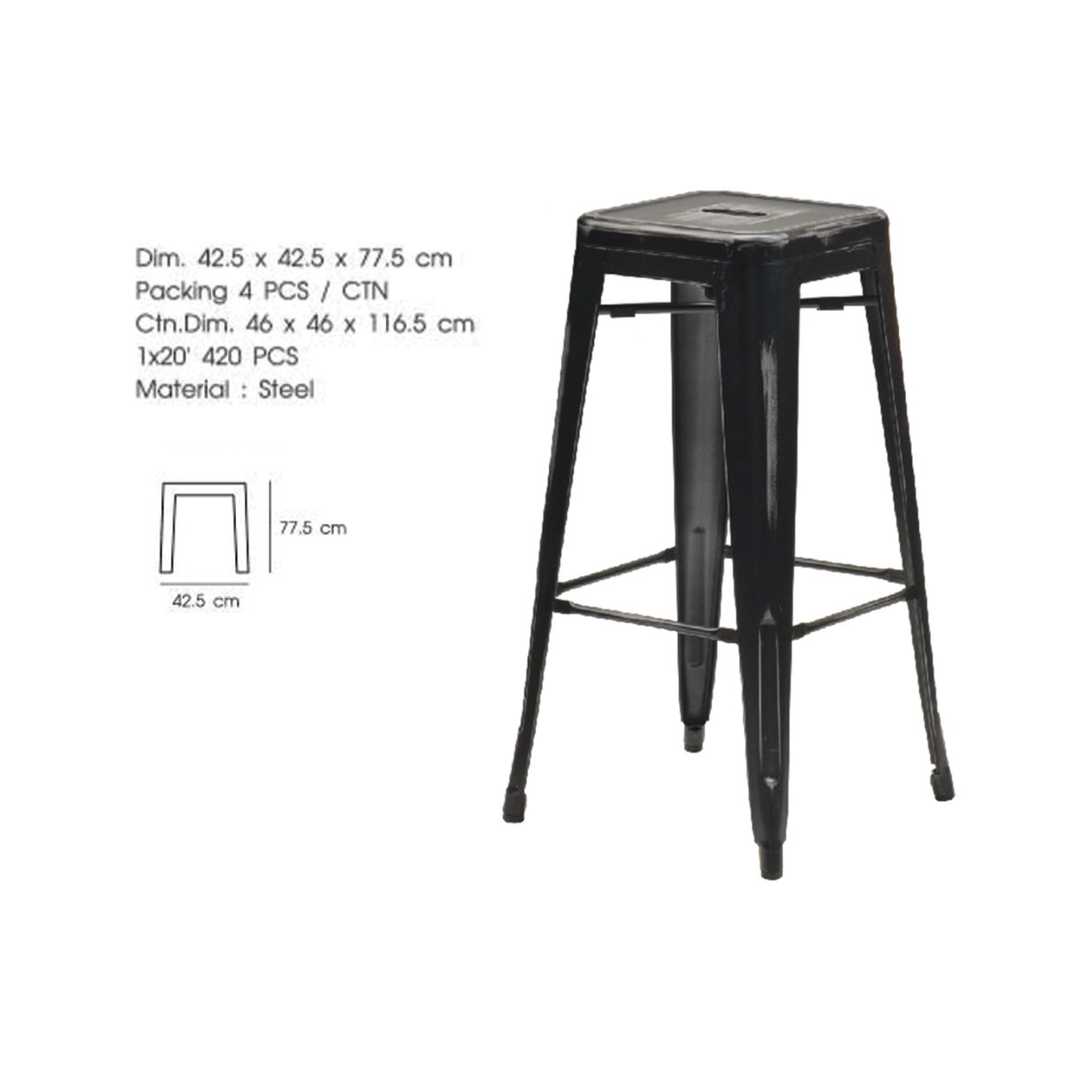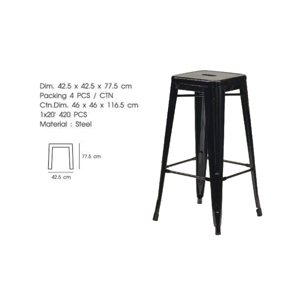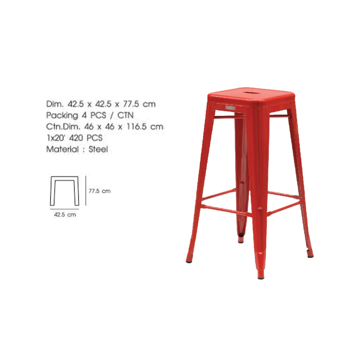 ◆ เก้าอี้เหล็กเคลือบเงาทั้งตัว เก้าอี้บาร์ทรงสูง