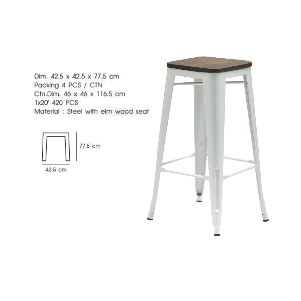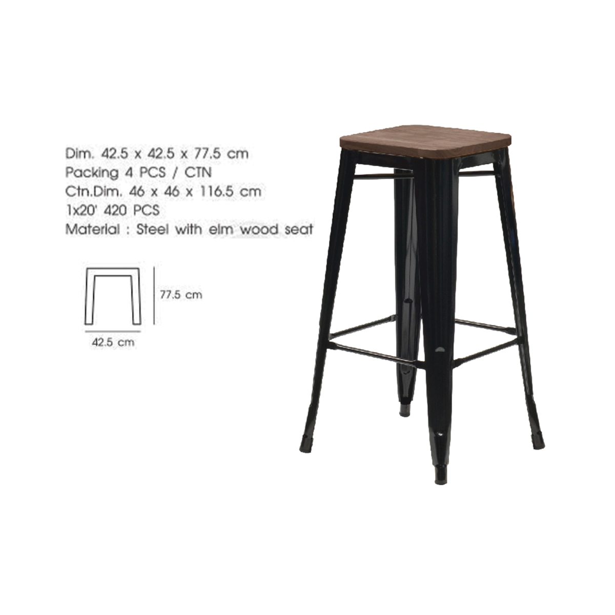 ◆เก้าอี้เหล็กเคลือบเงา ที่นั่งเป็นไม้ เก้าอี้บาร์ทรงสูง