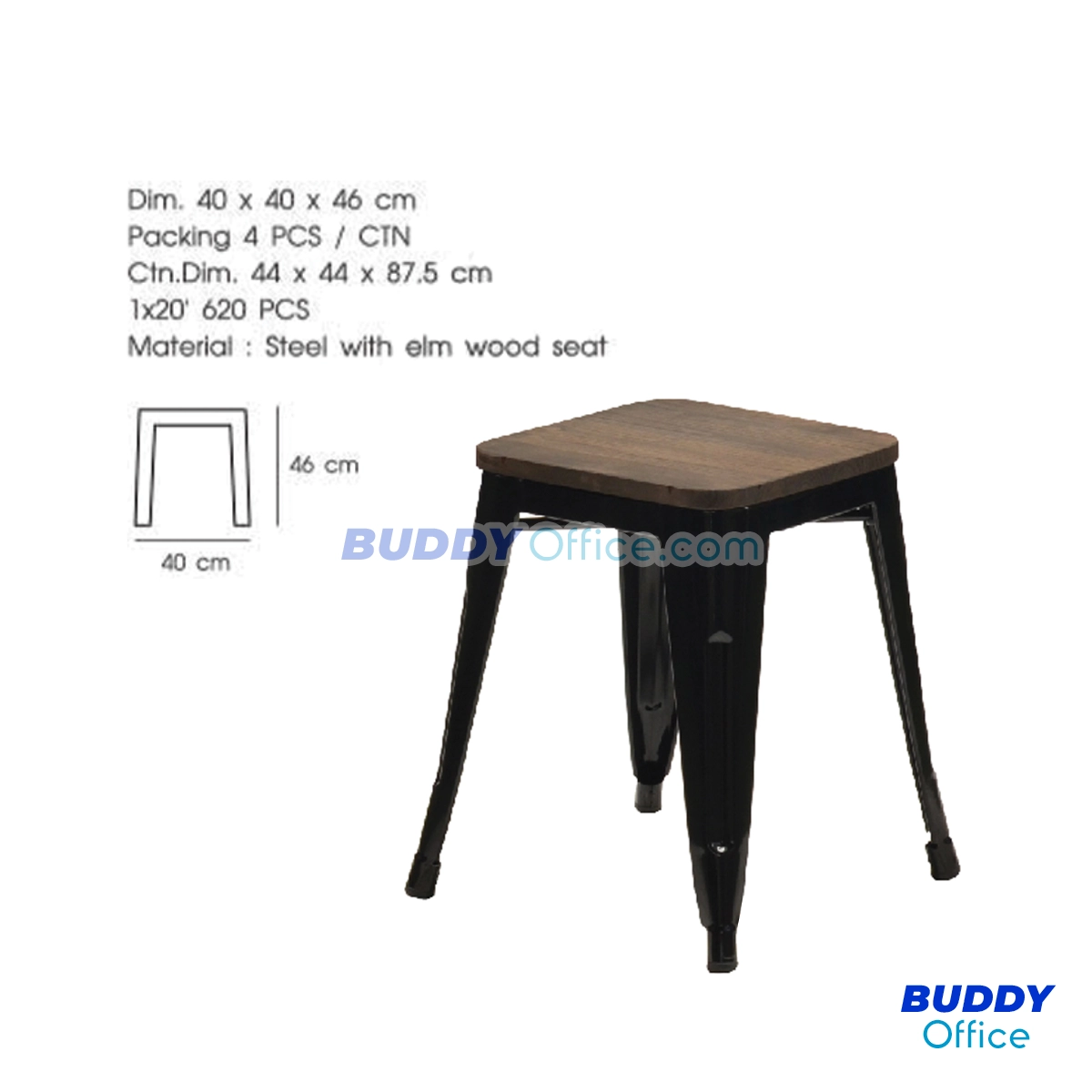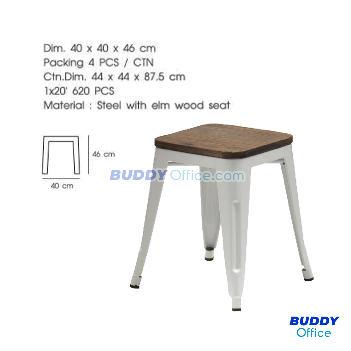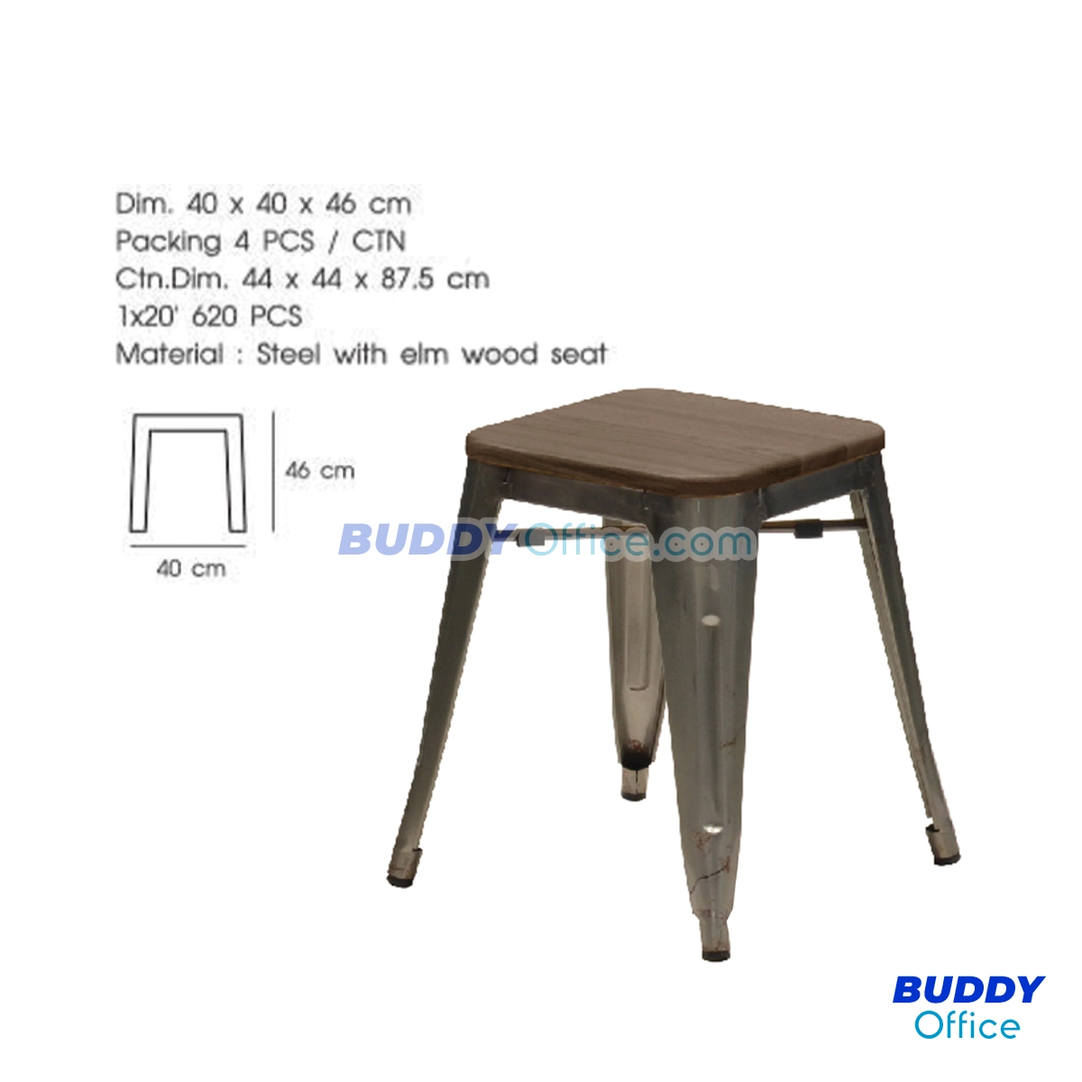 ◆ เก้าอี้เหล็กเคลือบเงา ที่นั่งไม้