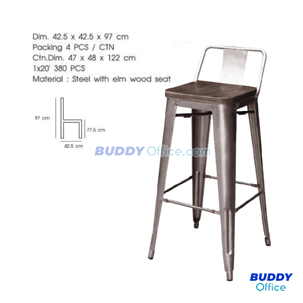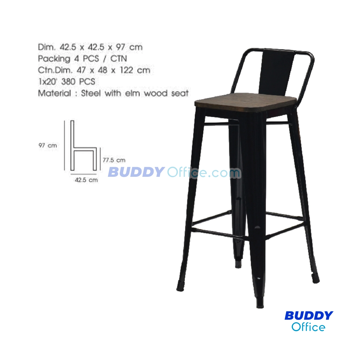 ◆ เก้าอี้บาร์เหล็กพ่นสี มีพนักพิงเล็กน้อย