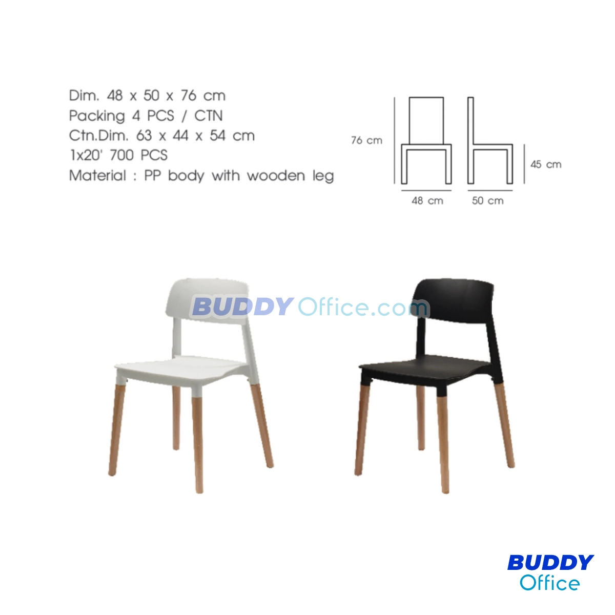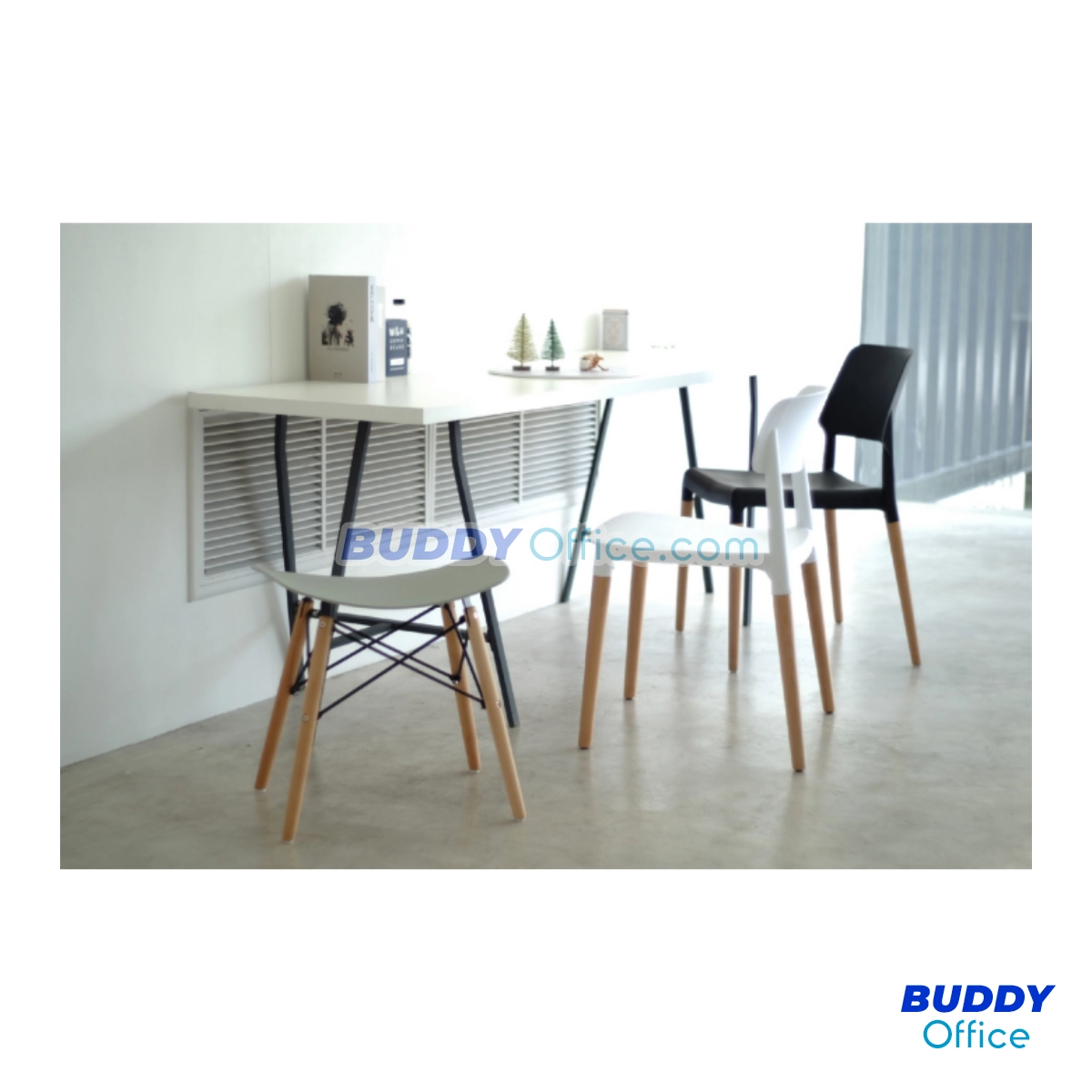 ◆ เก้าอี้ที่นั่งและหลังพิงพลาสติกขาไม้