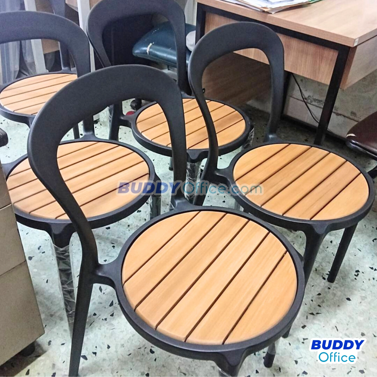 ◆ ผลิตจากวัสดุ Polypropylene ที่นั่งลายไม้