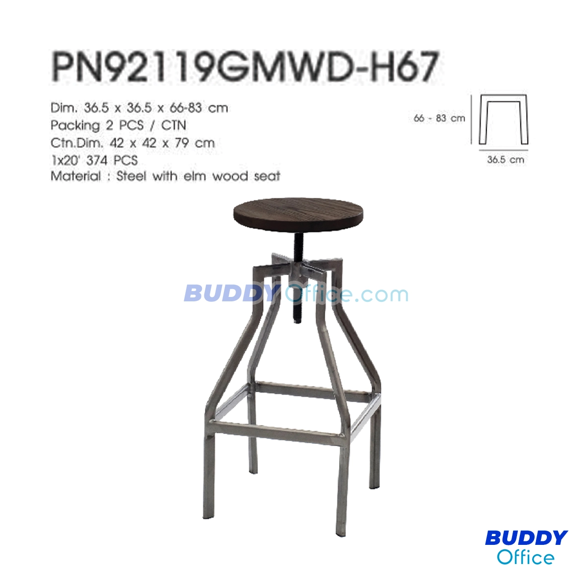 ◆ เก้าอี้ปรับระดับความสูงได้ เป็นเหล็กเคลือบเงา ที่นั่งไม้