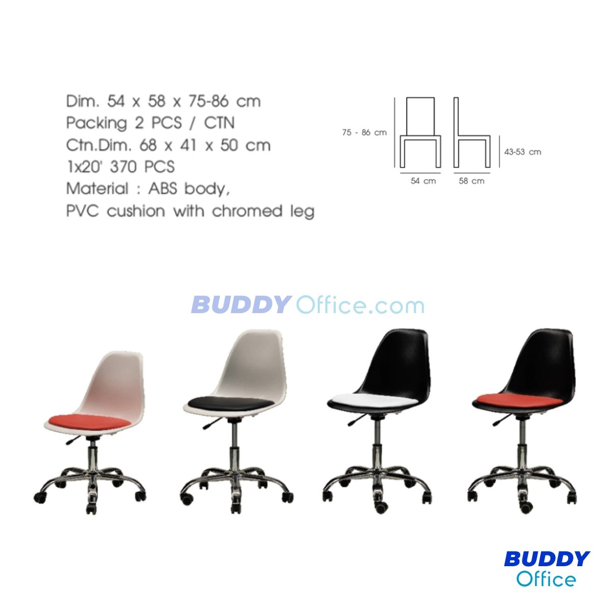 ◆ ขนาด W54 x D58 x H75-86ซม.