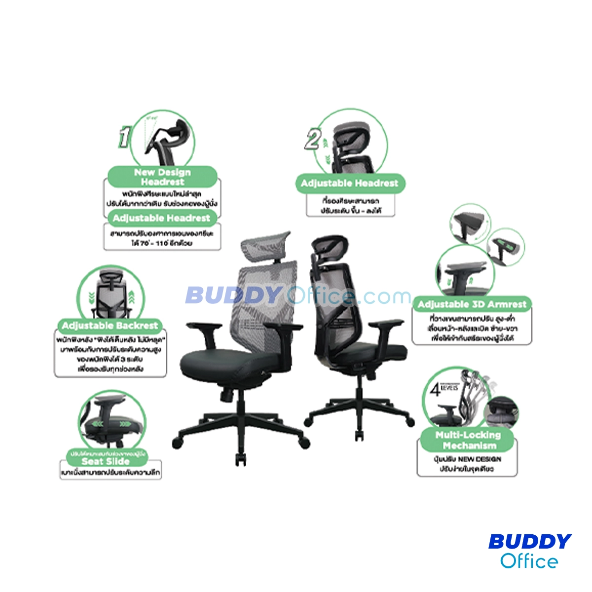 ◆ พนักพิงศีรษะ New Adjustable Headrest สามารถปรับระดับสูง-ต่ำได้