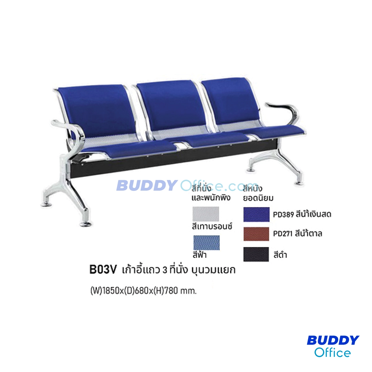 ◆ เก้าอี้แถว ที่นั่งและพนักพิงบุฟองน้ำหุ้มหนัง B03V