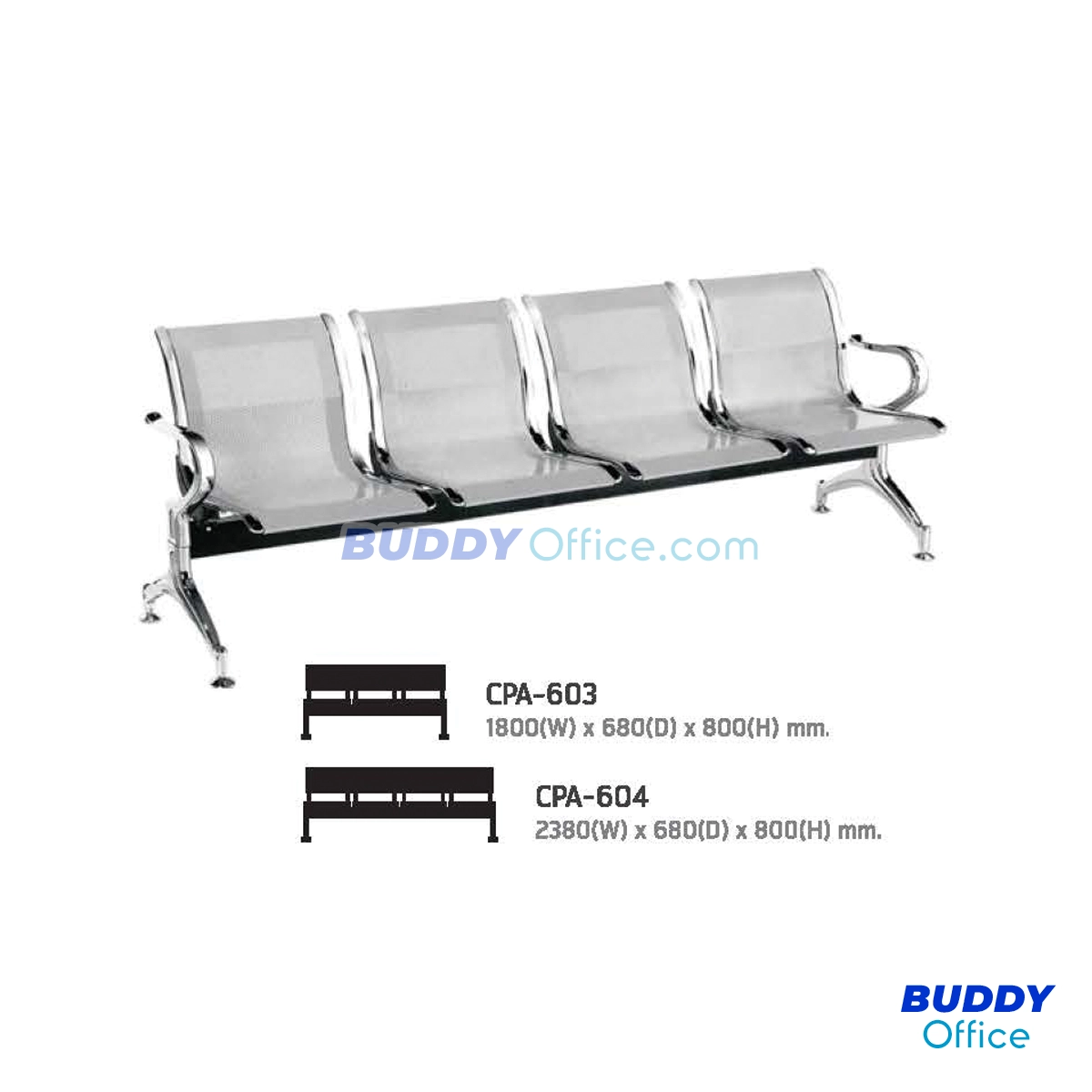 เก้าอี้แถว พนักพิงที่นั่งเหล็ก มี 4 ที่นั่ง มีที่พักแขนซ้าย-ขวา CPA604