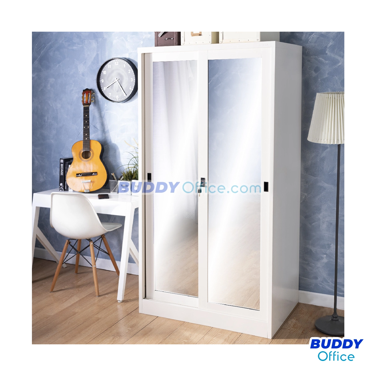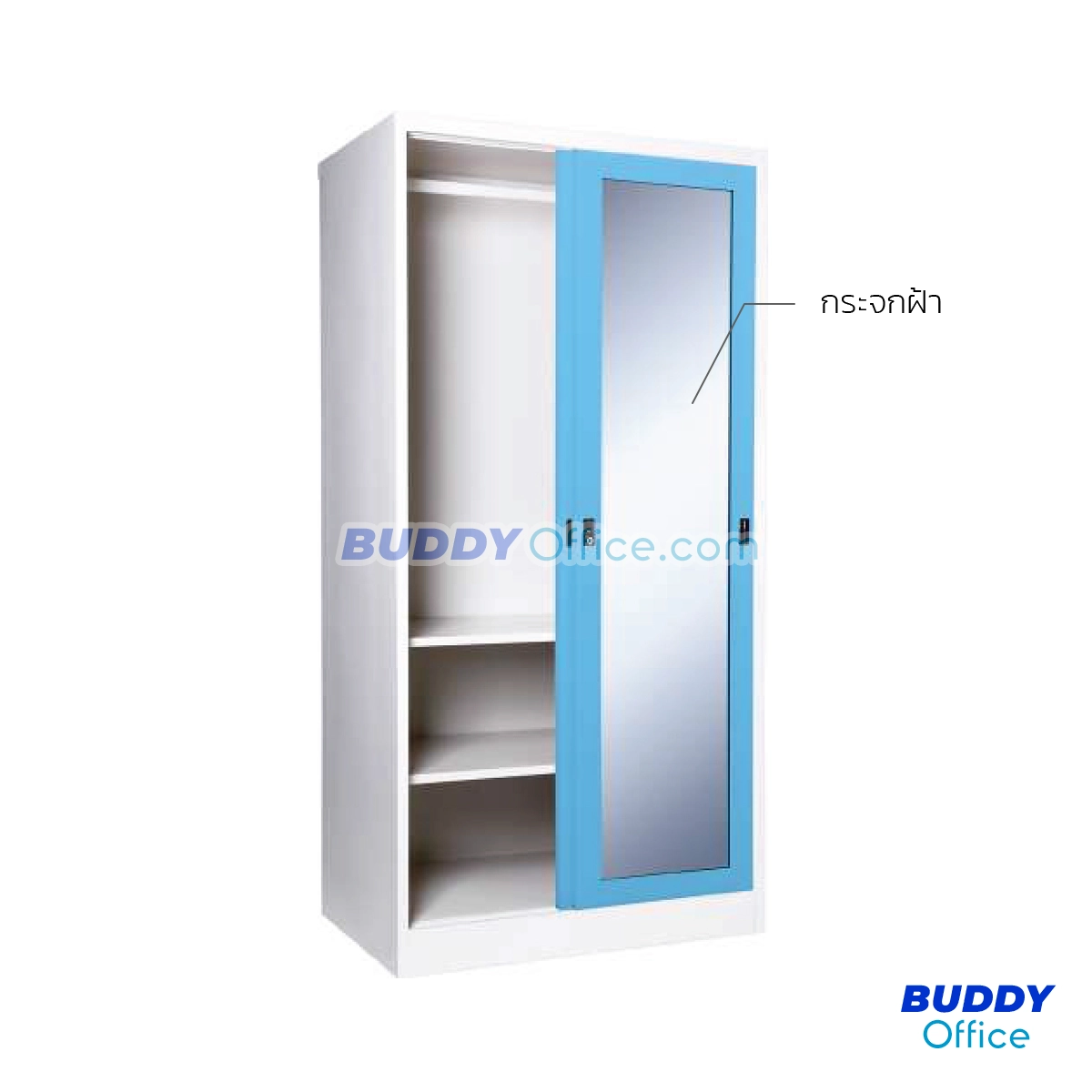ตู้เสื้อผ้าเหล็กบานเลื่อน SGW182-1 กระจกเงา / ขนาด W91.4 x D56 x H182 ซม.