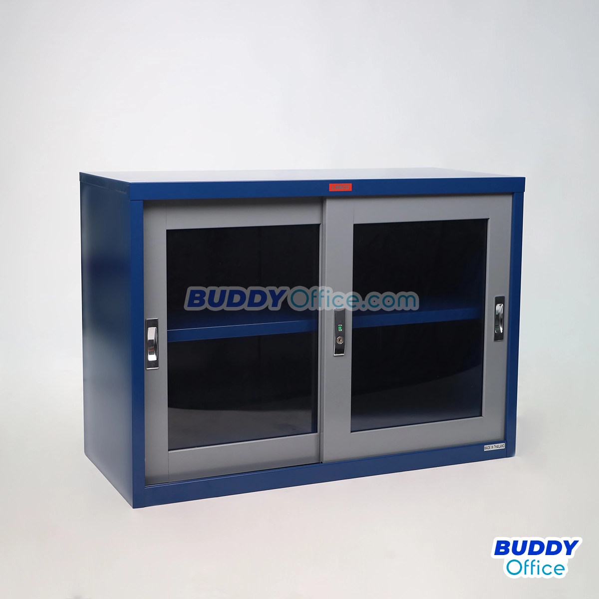 ◆ ตู้บานเลื่อนกระจกพร้อม 2 แผ่นชั้นปรับระดับได้และกุญแจ