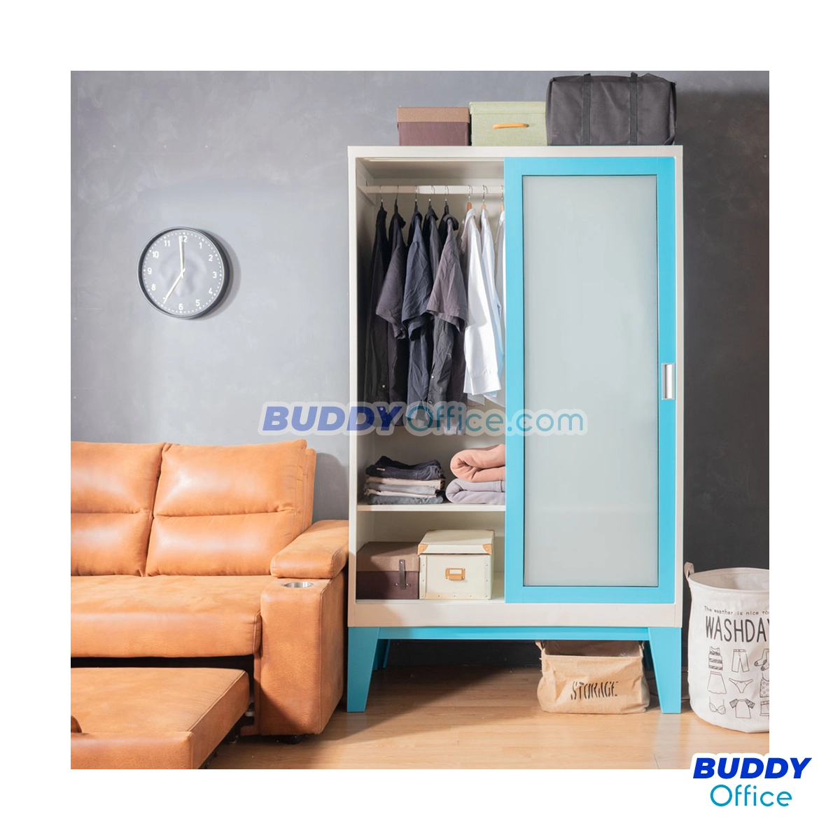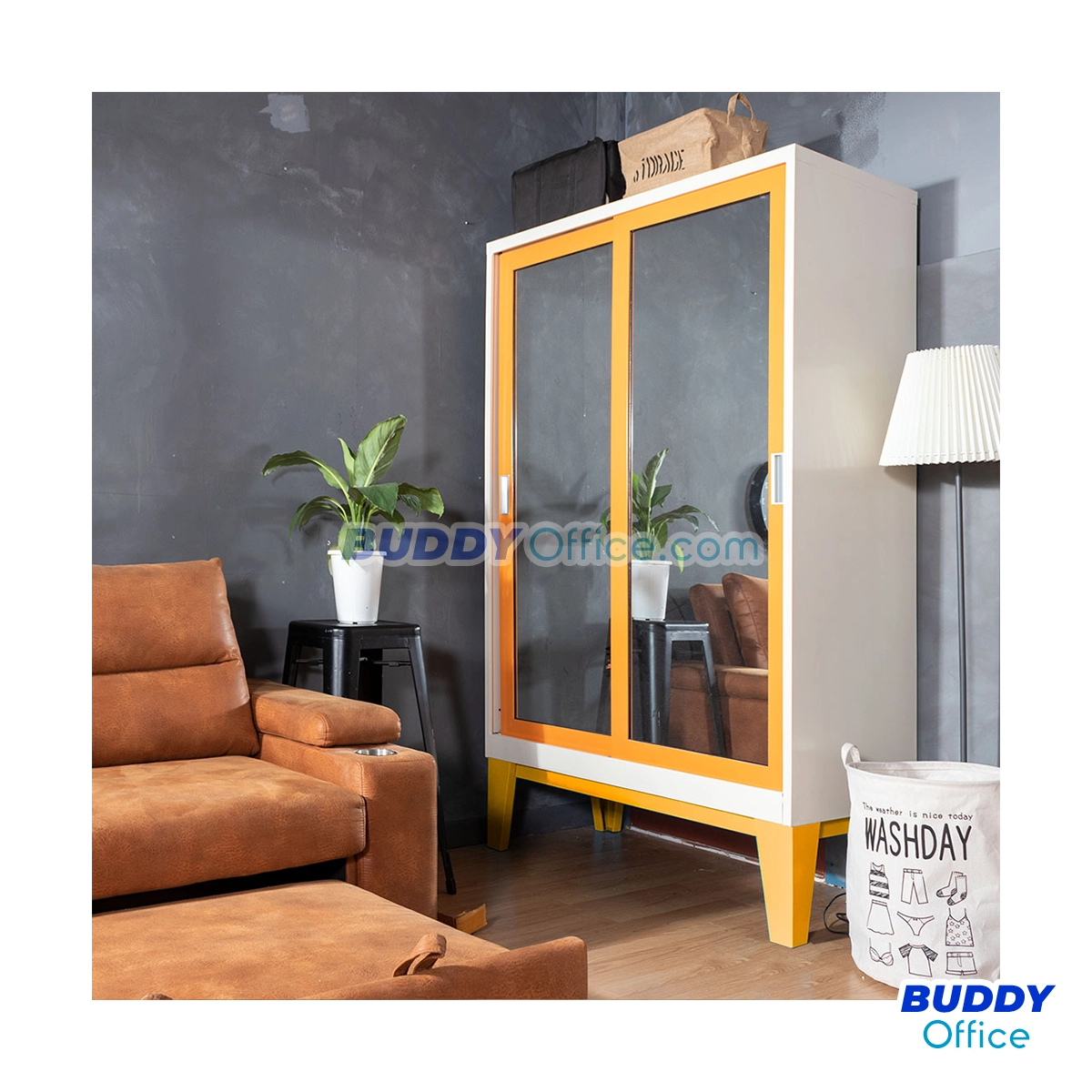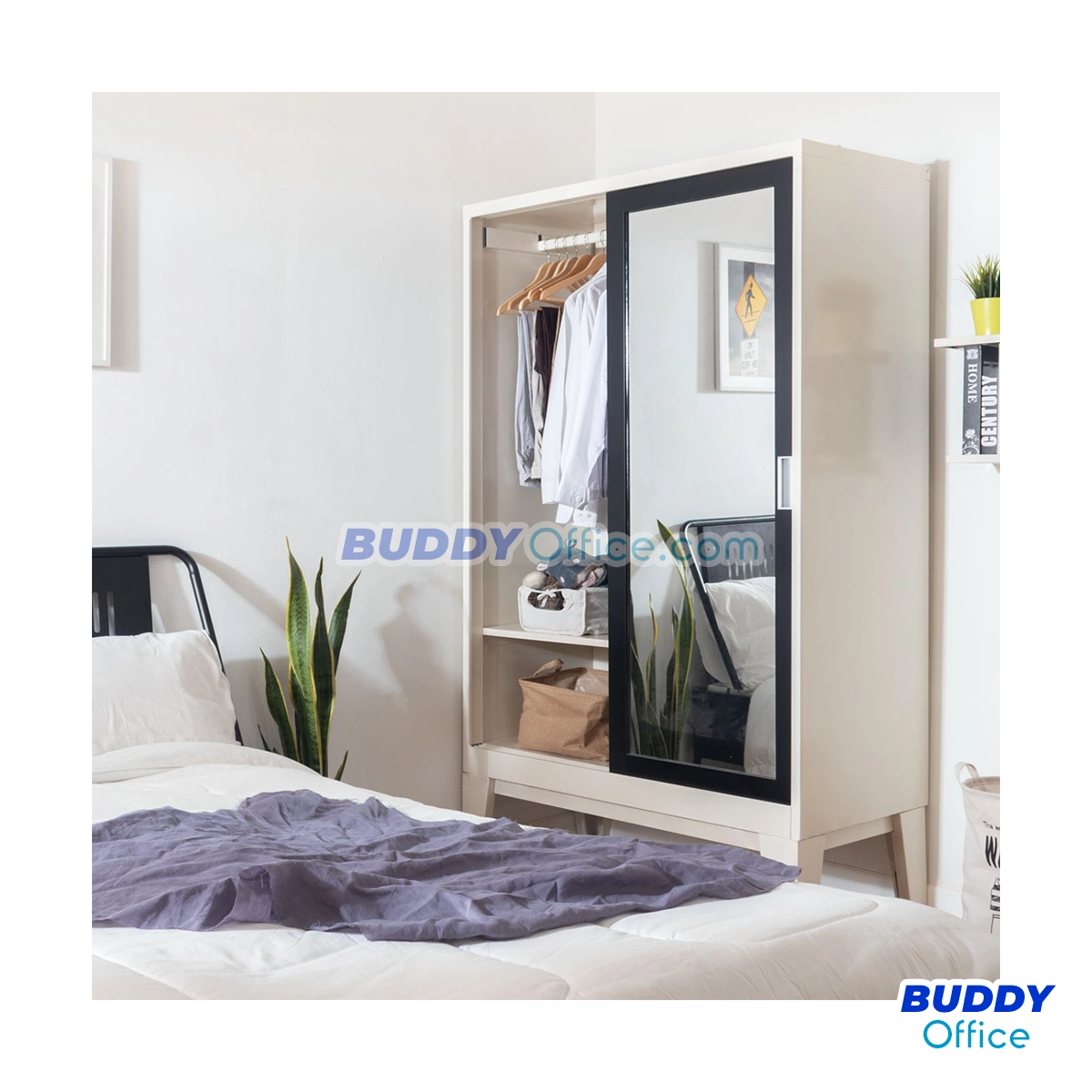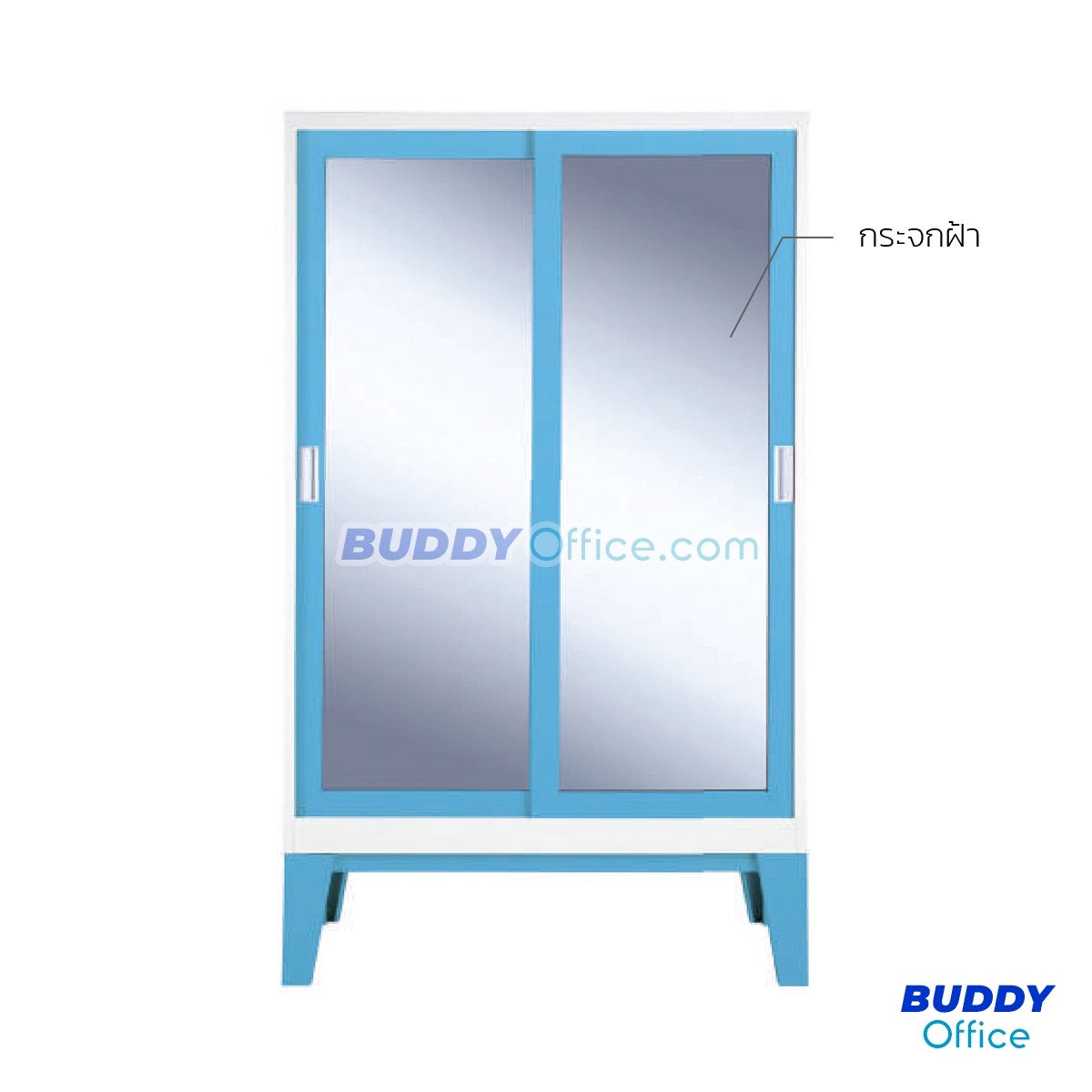 ◆ ตู้เสื้อผ้าเหล็กบานเลื่อนกระจก พร้อมฐานรองตู้
