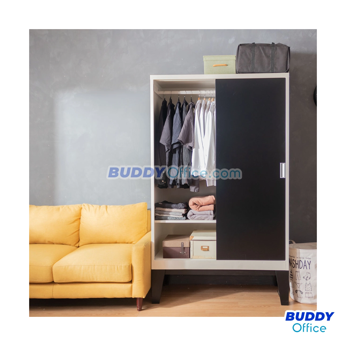 ◆ ตู้เสื้อผ้าบานเลื่อนทึบขนาดสูง พร้อม 1 ราวแขวนและ 1 แผ่นชั้น (รวมขาทรงสูง)