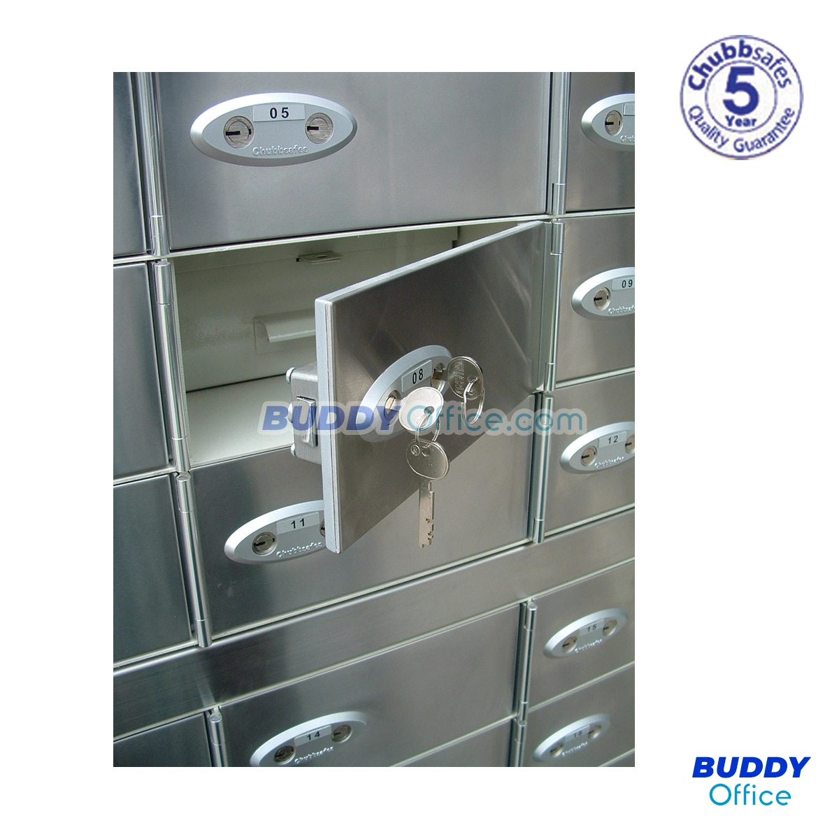 ◆ กุญแจแบบองศาต่างระดับ 10 แถบระดับ และระบบล็อคแบบ Double lockในแต่ละช่องฝากจะมีกุญแจไข 2 ฝั่ง ฝั่งแรกเป็นของผู้ให้บริการ อีกฝั่งเป็นของผู้เช่า ต้องใช้กุญแจ 2 ดอก ทั้ง 2 ฝั่งพร้อมกันจึงจะเปิดได้