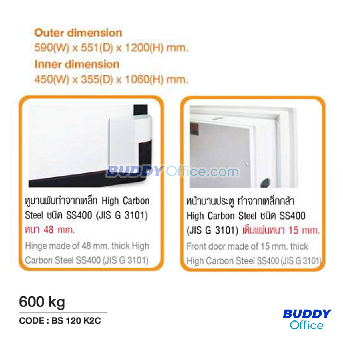 ◆ ขนาด Outside W59 x D55.1x H120 ซม.