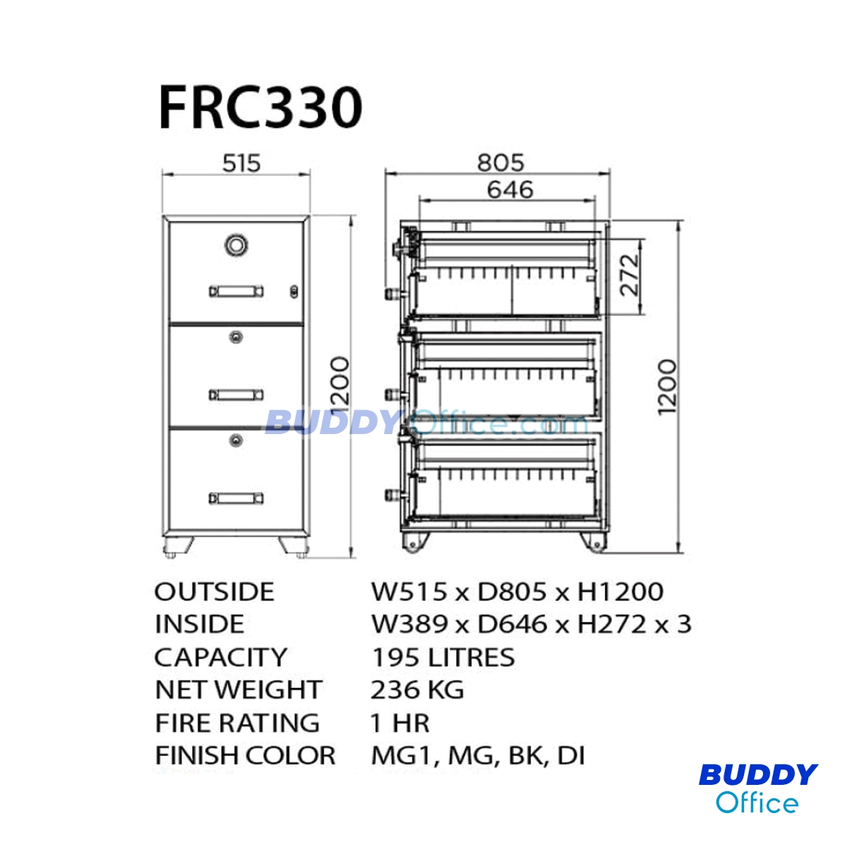 ตู้เซฟนิรภัยกันไฟ แบบ 3 ลิ้นชัก FRC330
