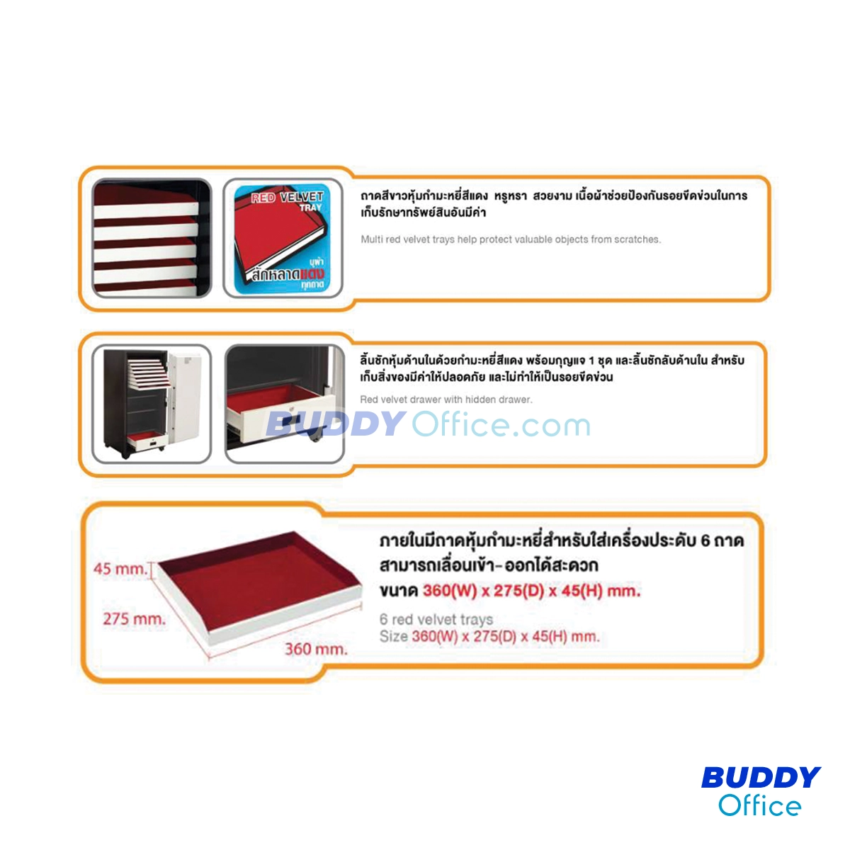 ◆ ภายในมี 6 ถาดลิ้นชัก หุ้มกำมะหยี่สีแดง