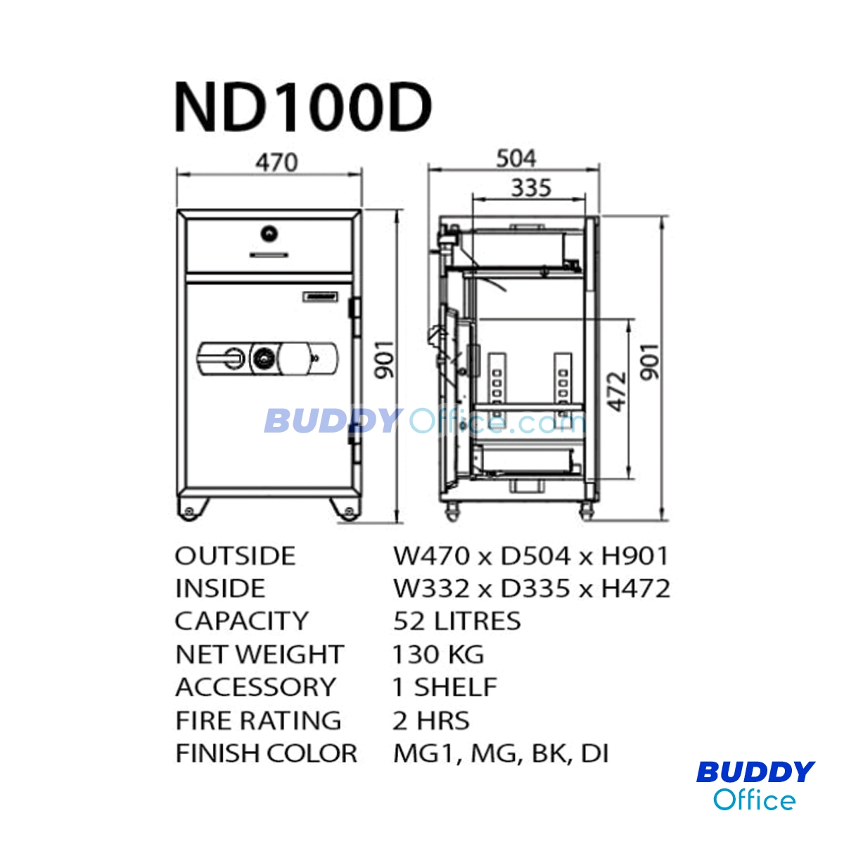 ตู้เซฟนิรภัยกันไฟ แบบ 1 ลิ้นชัก ระบบดิจิตอล ND100D