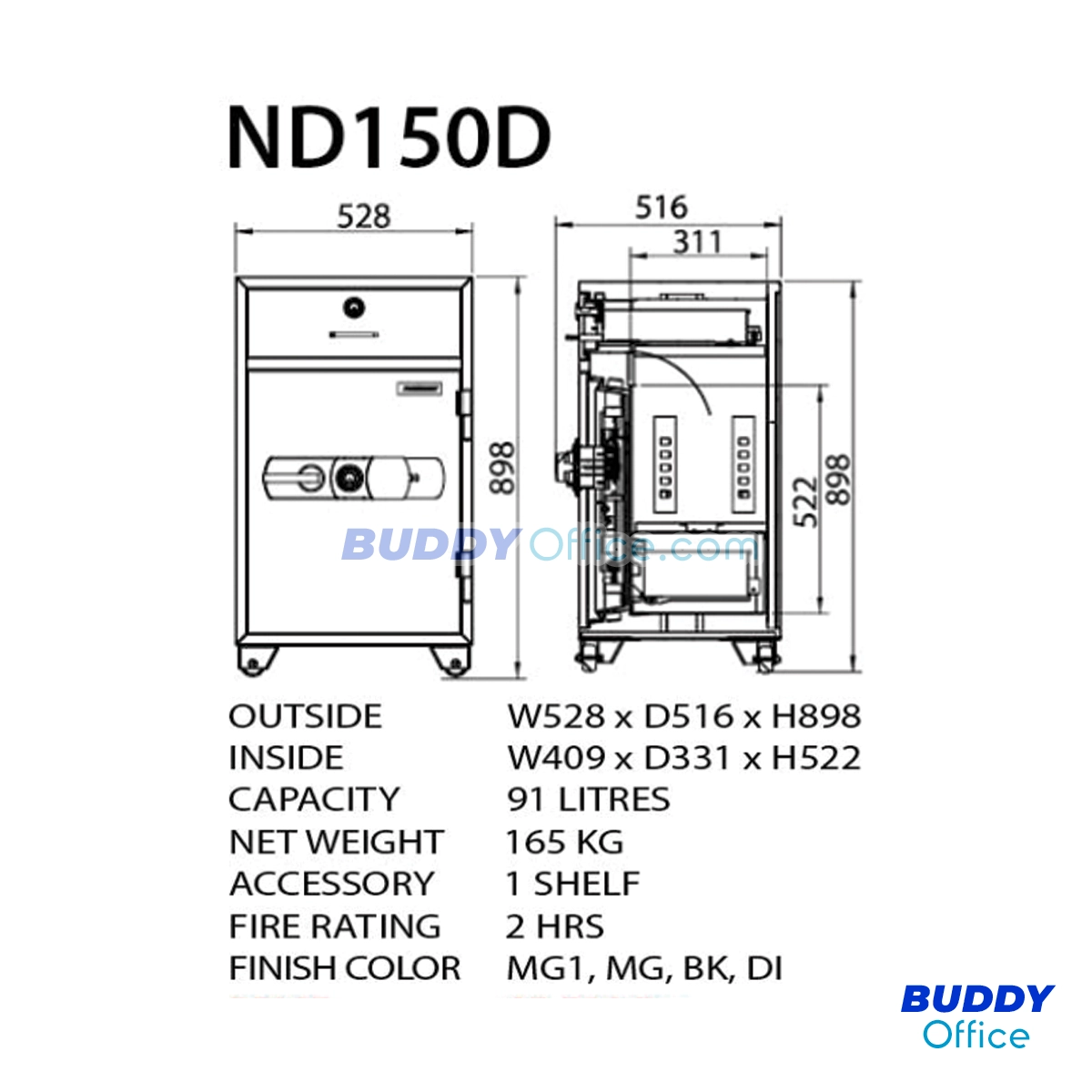 ตู้เซฟนิรภัยกันไฟ แบบ 1 ลิ้นชัก ระบบดิจิตอล ND150D
