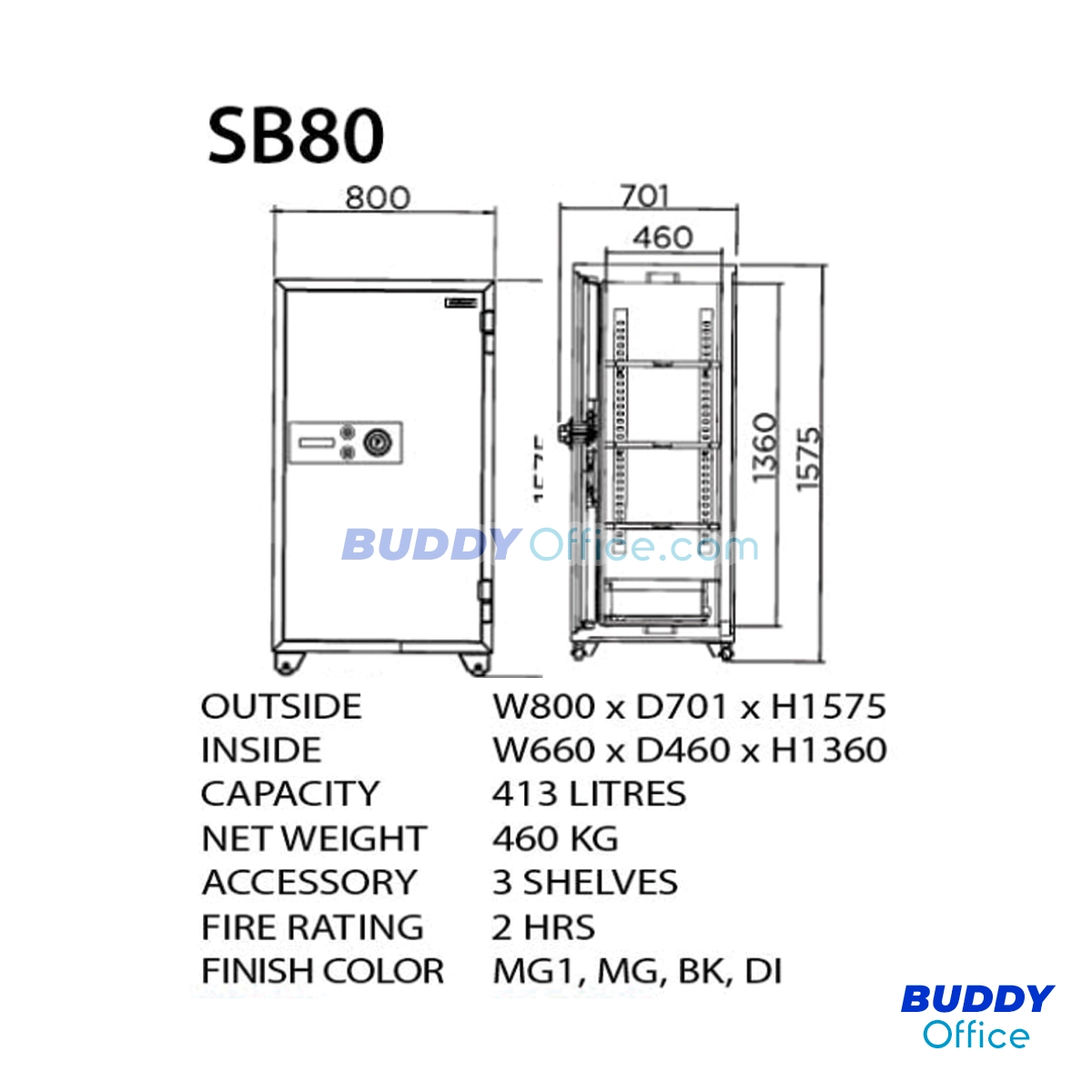 ◆ ขนาด Outside W80 x D70.1 x H157.5 ซม.