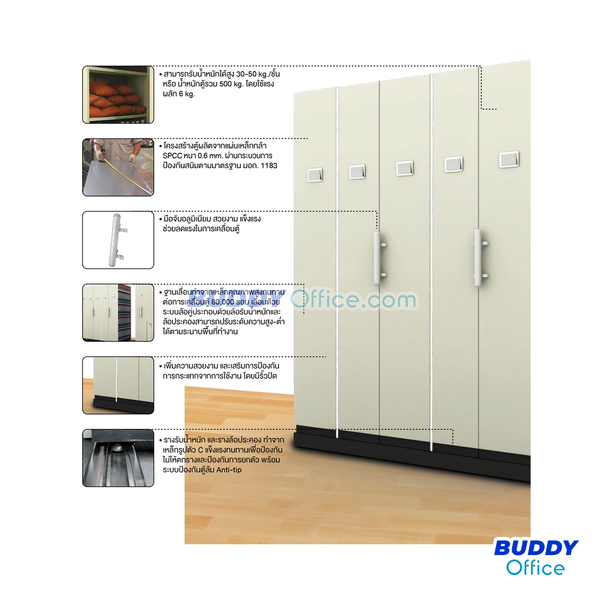 ◆ มือจับอลูมิเนียม สวยงาม แข็งแรง ช่วยลดแรงในการเคลื่อนตู้