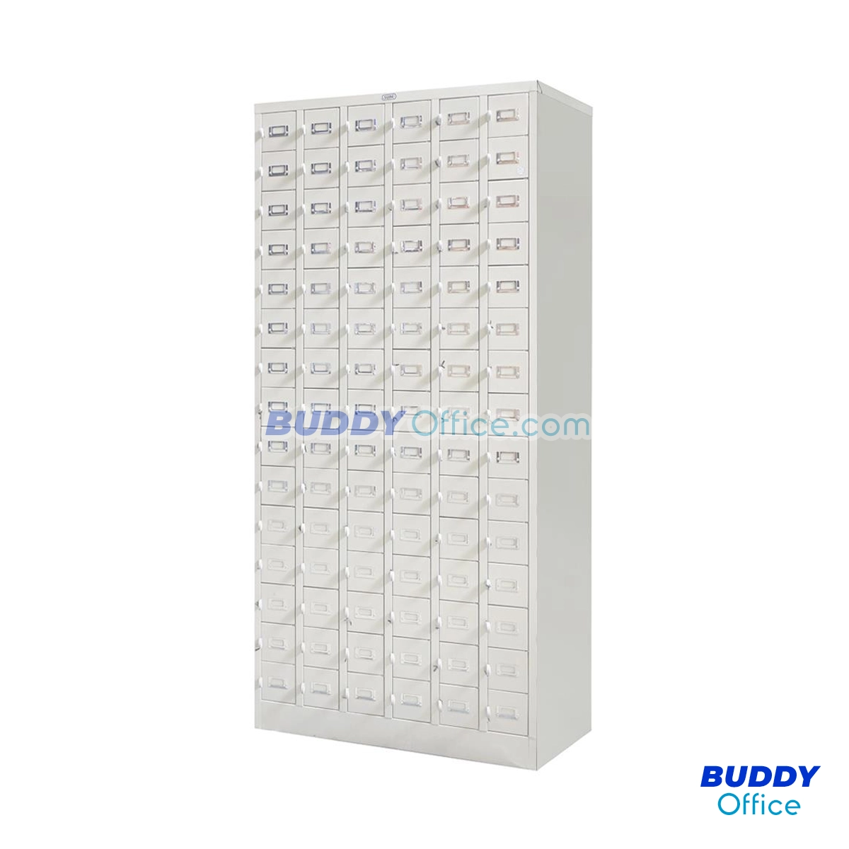 ◆ ช่องเก็บของ 90 ช่อง ระบบล็อก ใช้แม่กุญแจล็อกที่หูคล้องทุกบานประตู