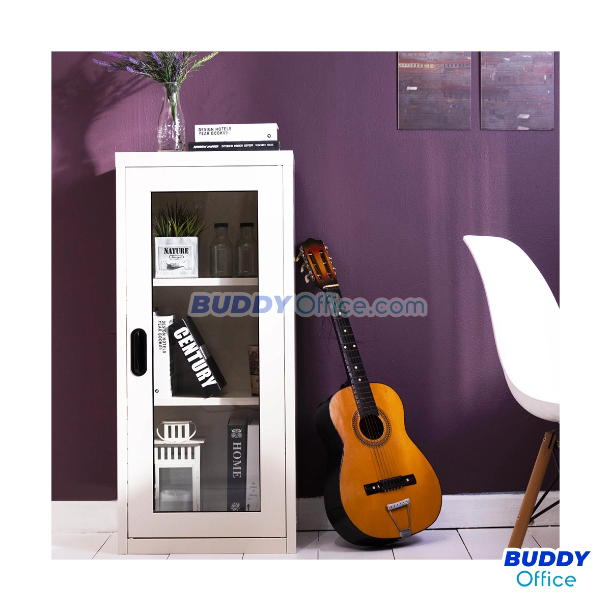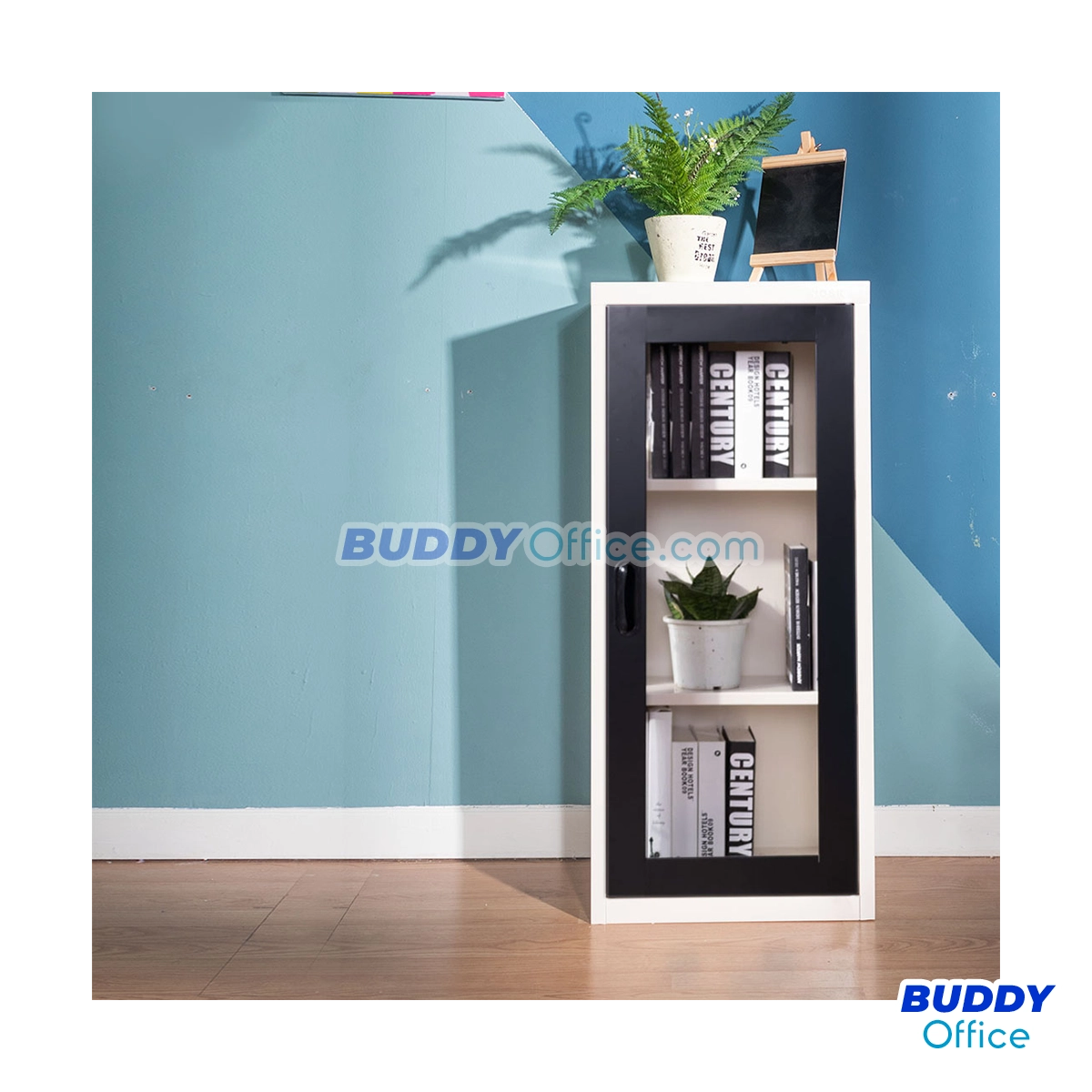 ตู้กลางวางหนังสือ 1 บานเปิดกระจก MAX022