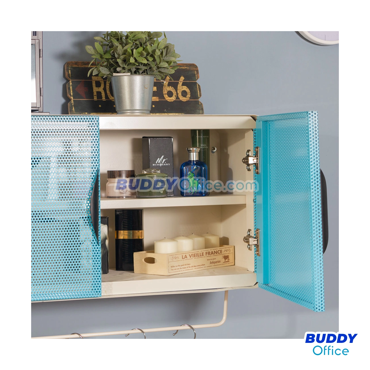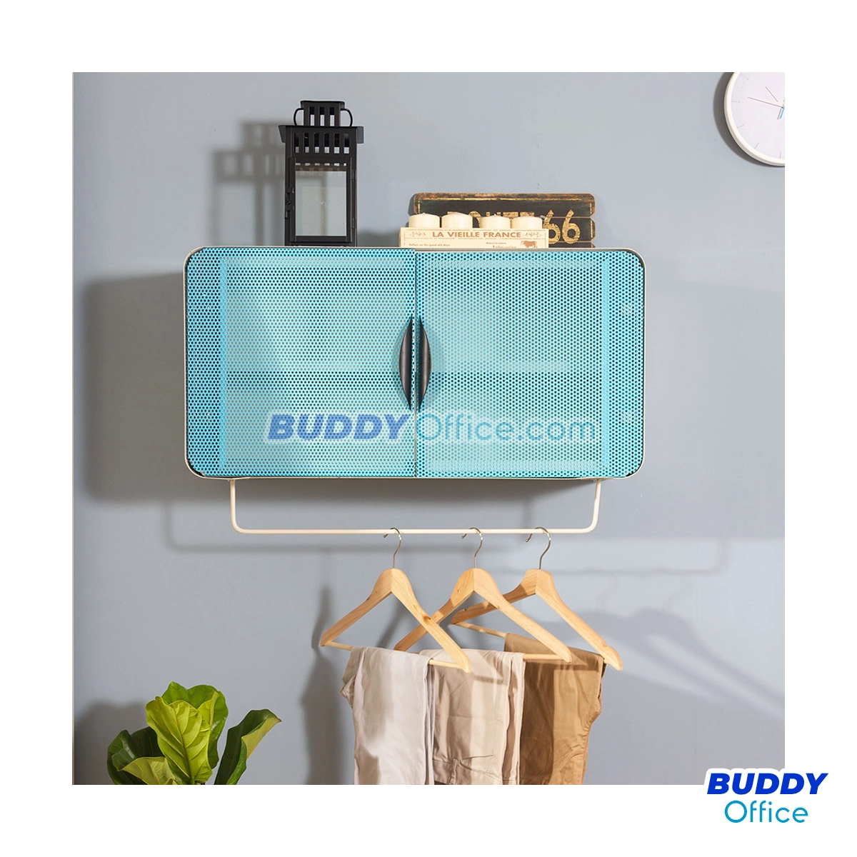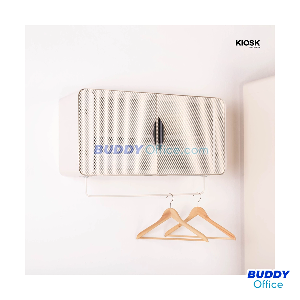 ◆ ตู้แขวนผนังแนวนอน 2 บานเปิด ดีไซน์หน้าบานเปิดเป็นเหล็กรูระบายอากาศโดดเด่นสวยงาม