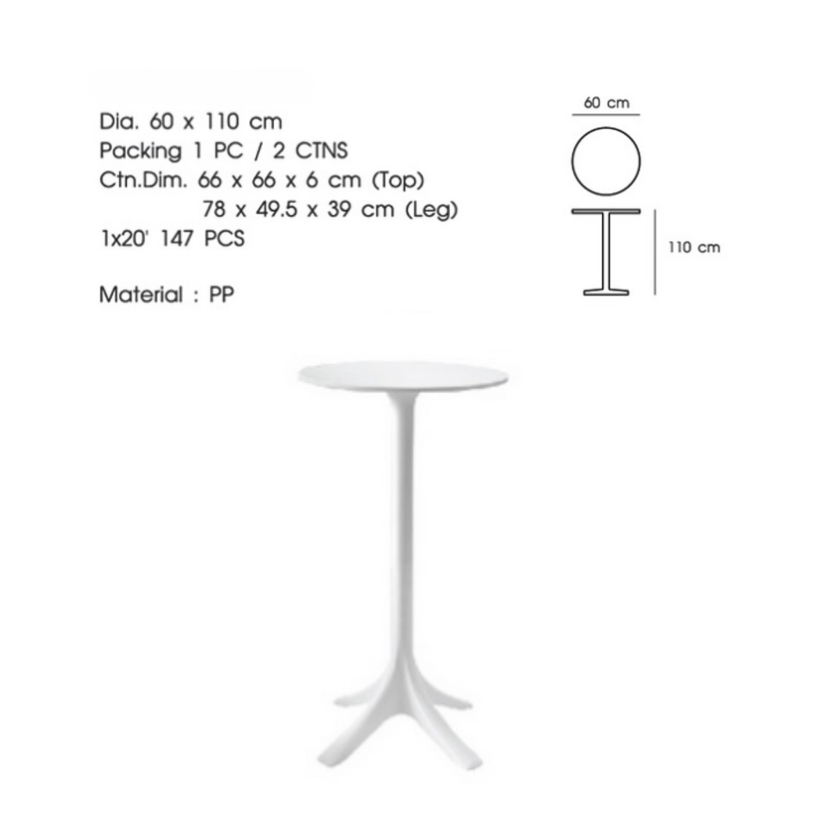 ◆ โต๊ะพลาสติกกลม BD94128-R60L