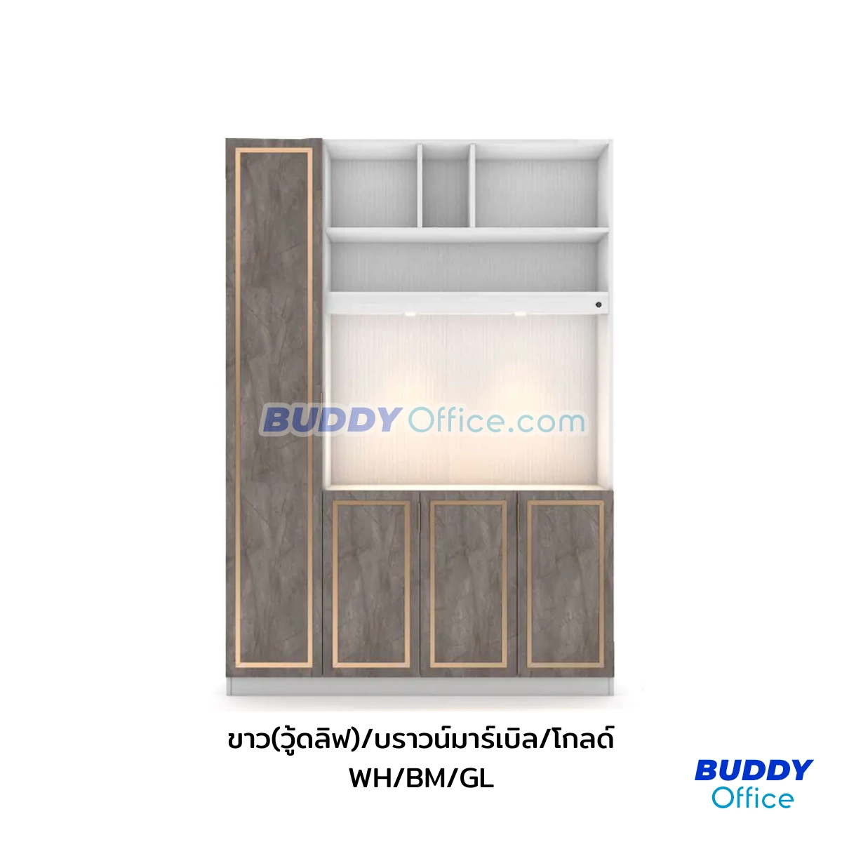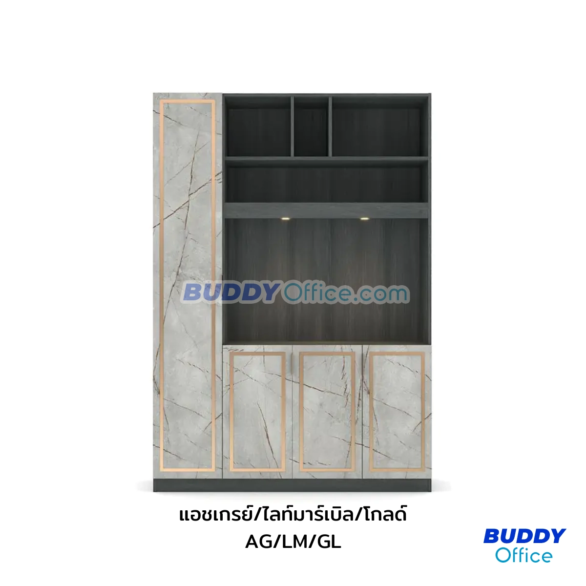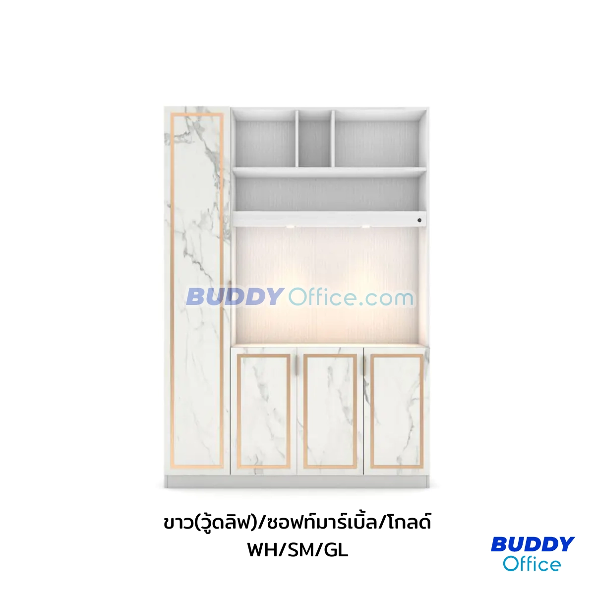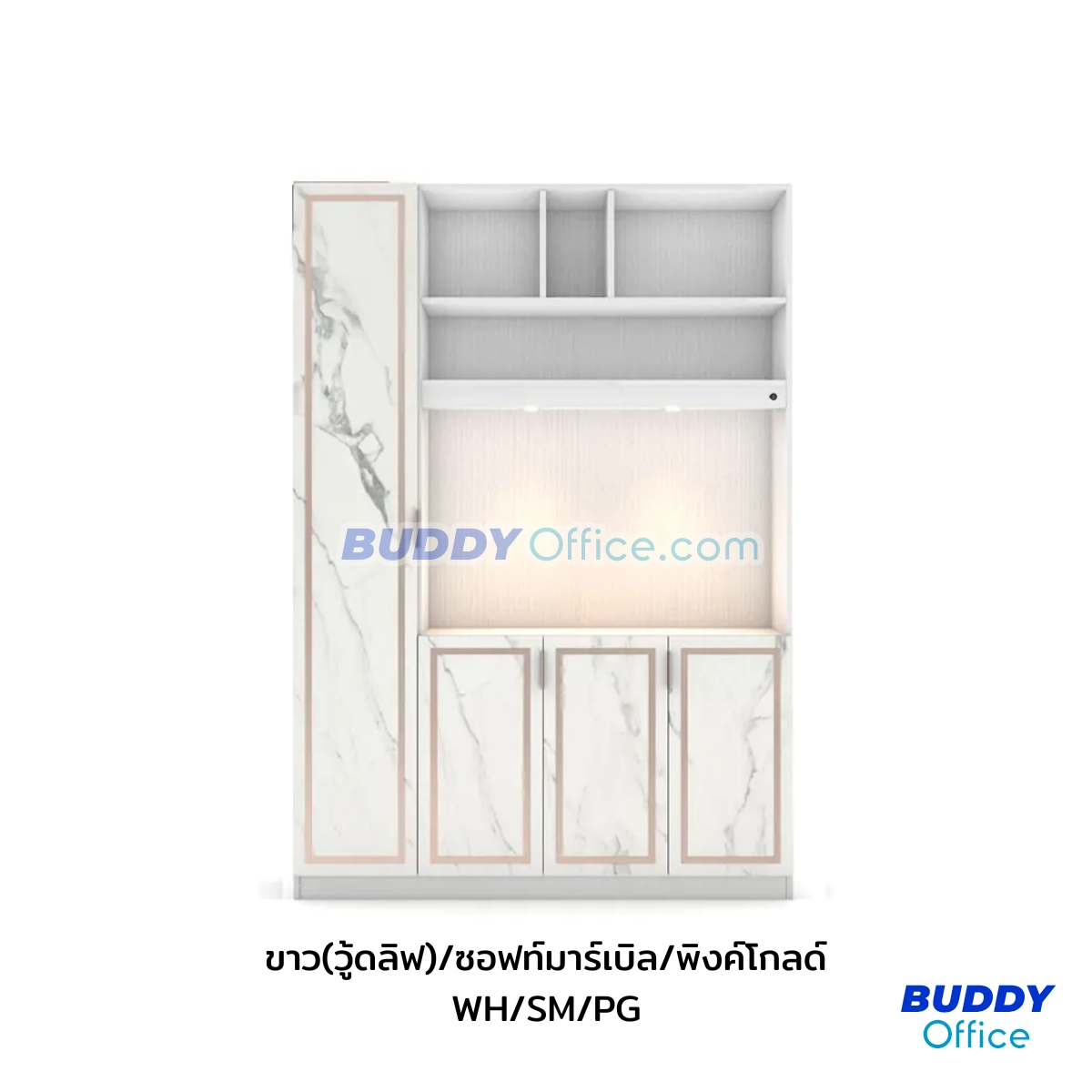 ◆ ไม้E1 ผิวเมลามีนลายหินอ่อน + คิ้วอลูมิเนียม