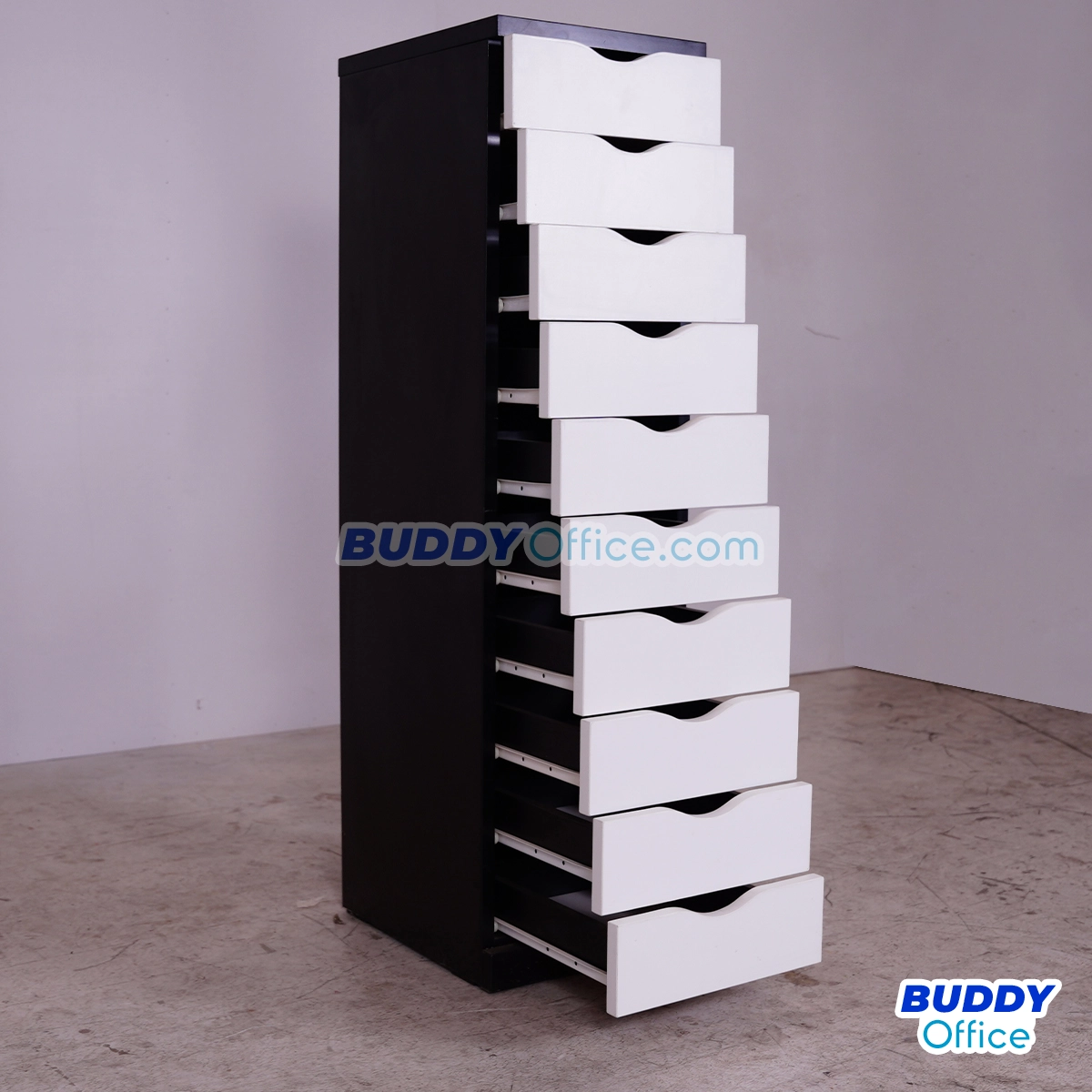 ◆ ตู้เก็บเอกสารไม้ 10 ลิ้นชัก BO-CB10 สีขาว+ดำ